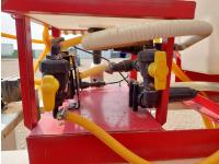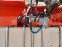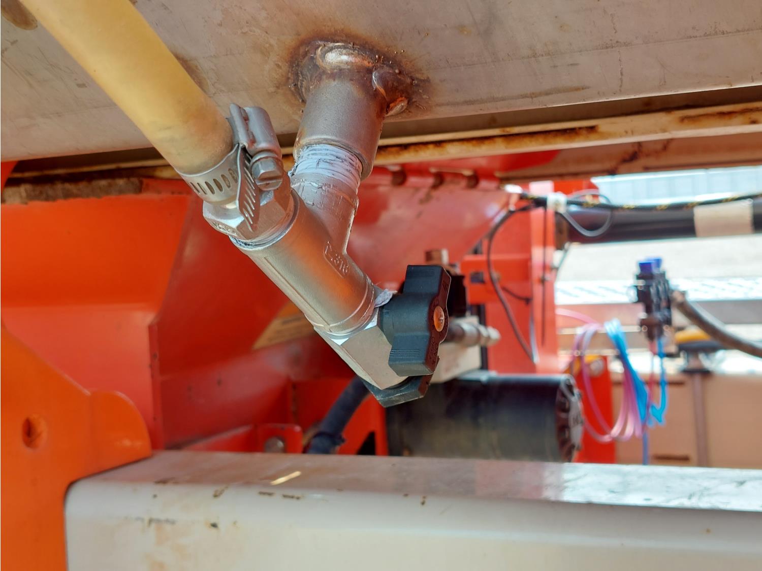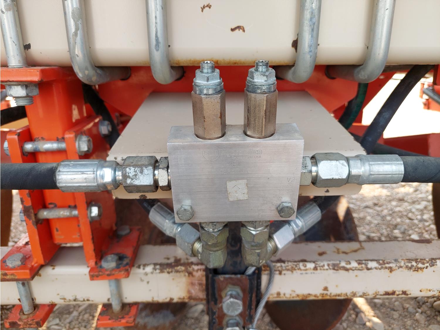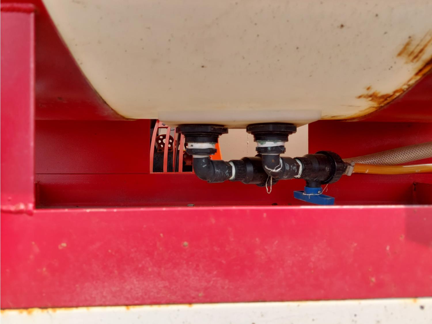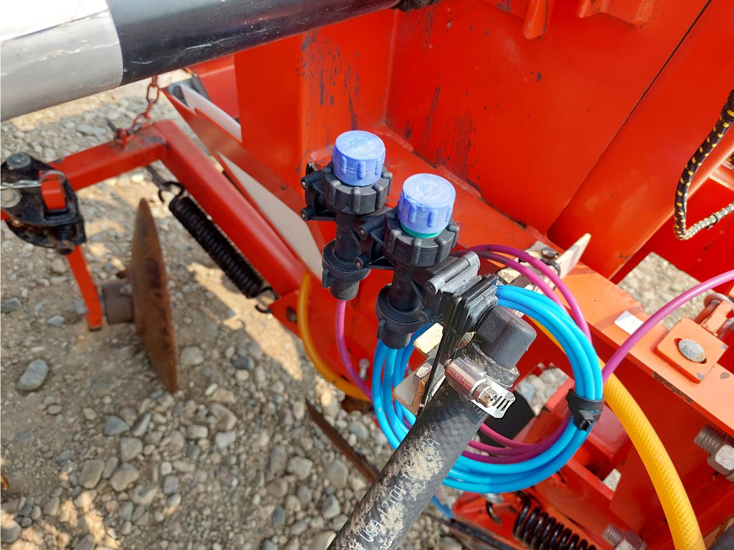 8x36 inch, large hopper, integrated fertilizer tanks behind bunker, chemical tank w/ pump setup, catwalk