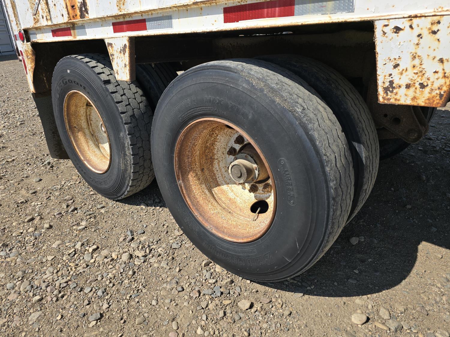 electric unload, roll tarp, 19 inch belt, spring suspension, 11R22.5