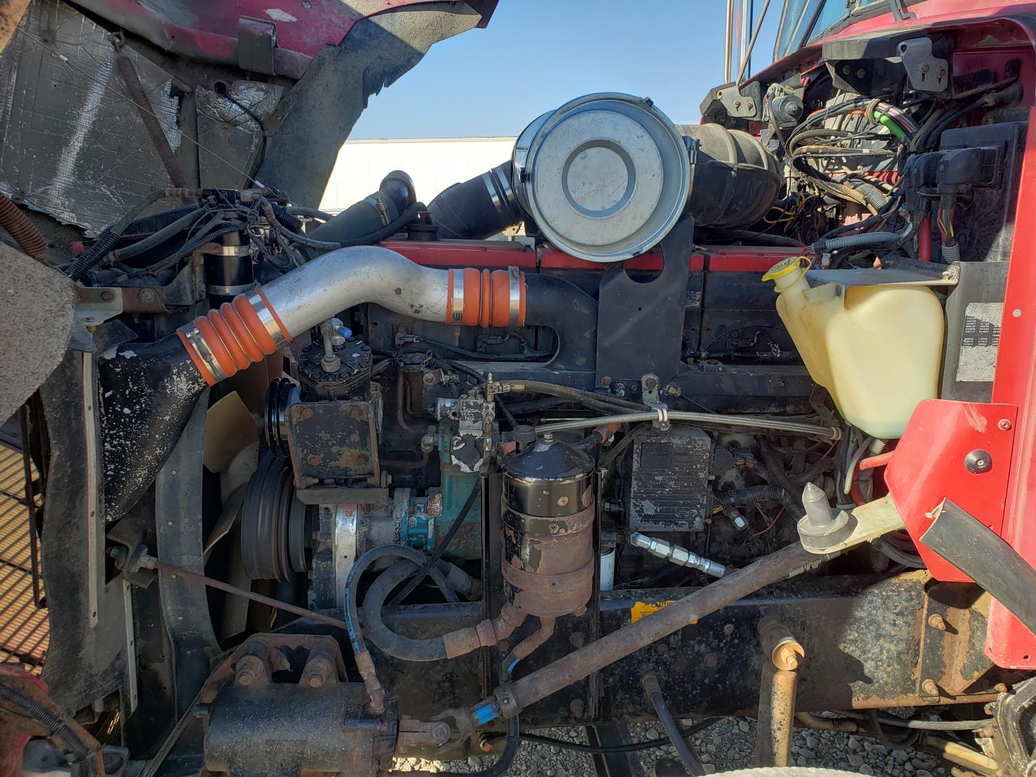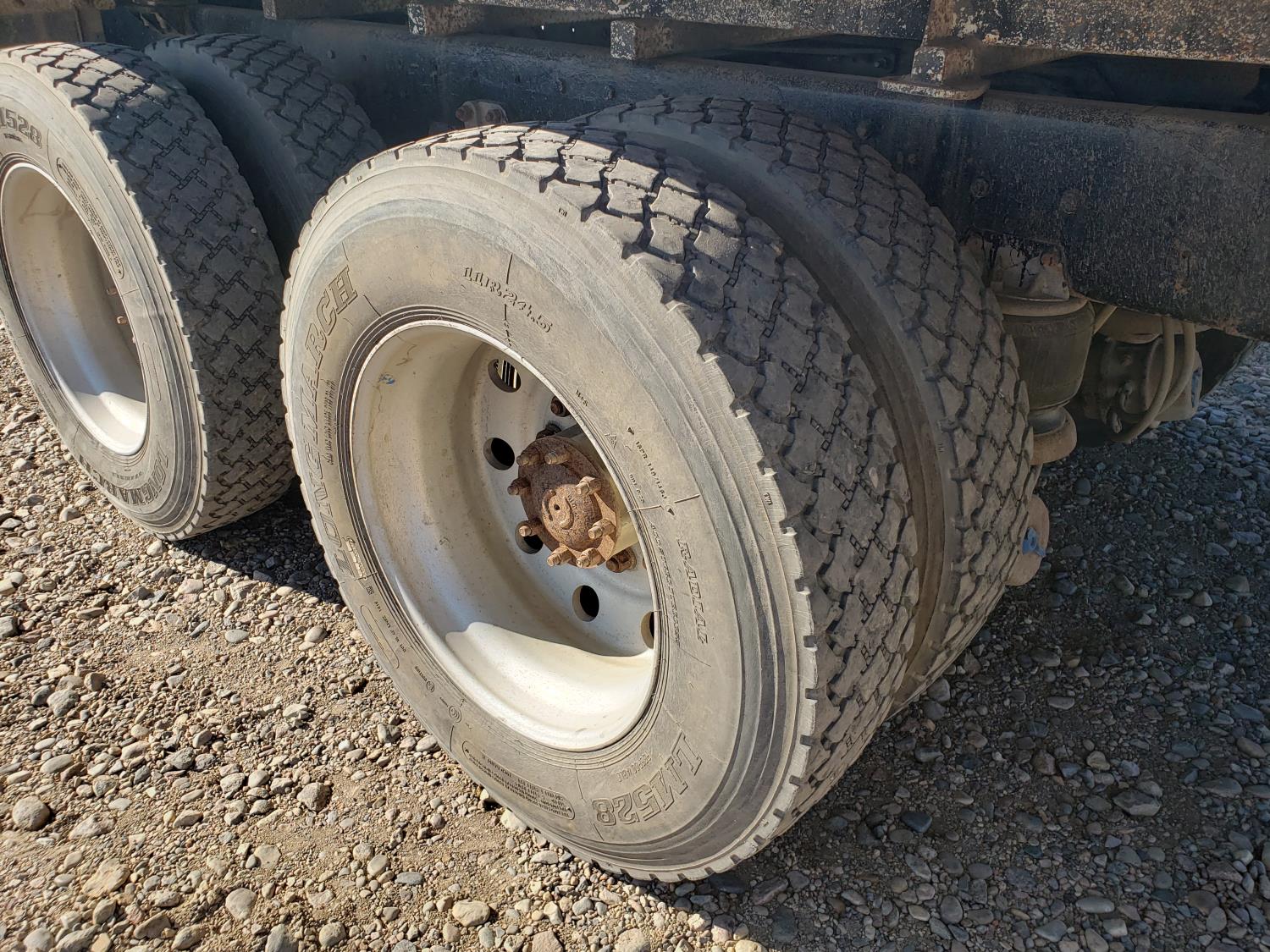 Cummins N14 engine, Eaton Fuller 18 speed manual transmission, roll tarp, Spudnik 20 ft live bottom box, 30 inch belt width, 220 inch WB, 8-bag suspension, full lockers, air ride suspension, 11R24.5 tires
