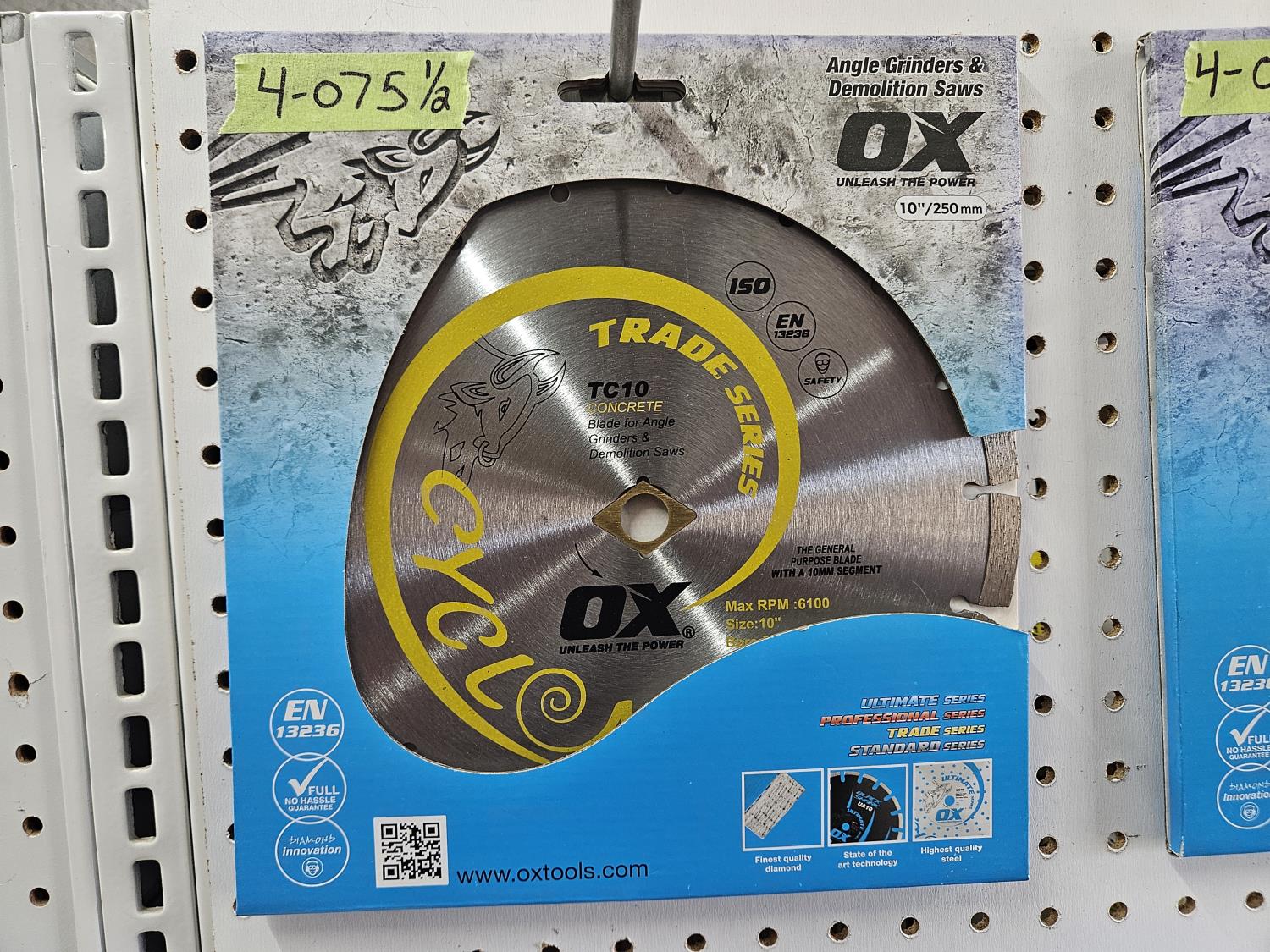 524 (2) Ox 10 Inch Concrete Cutting Blades (Unused)
