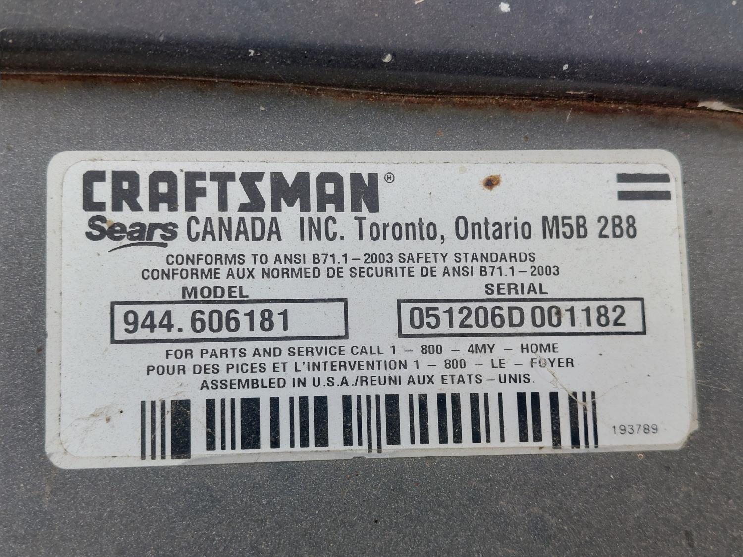 Craftsman 18.5HP OHV Intek engine, 42 inch deck, front tires: 5x6.00-6, rear tires 20x8.00-8