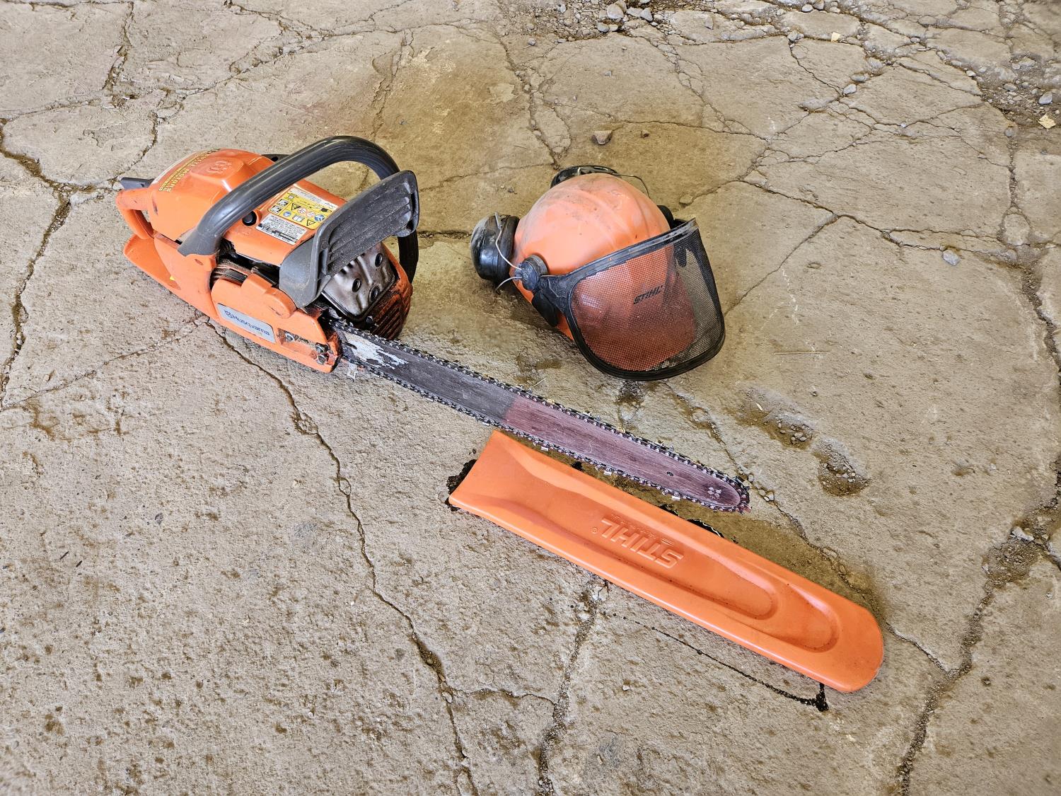comes with stihl chain cover, stihl face mask