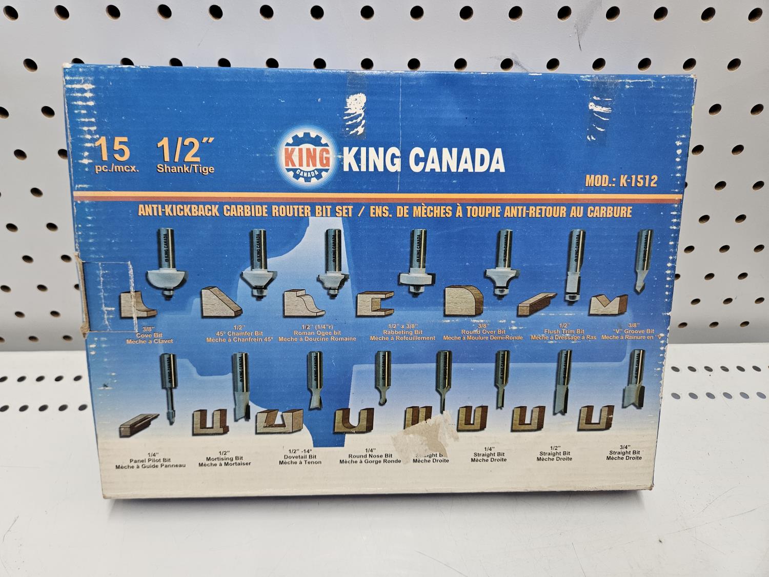 1411 King Canada 15 Piece 1/2 Inch Carbide Router Bit Set (Unused)
