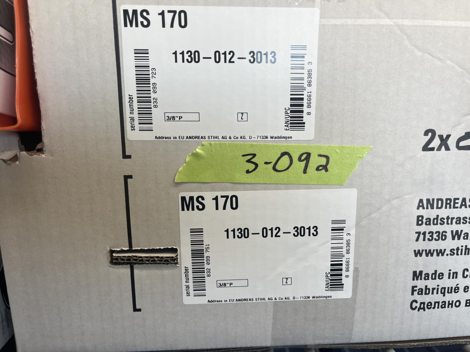 335 Qty of (2) Stihl MS170 Gas Chainsaws (Unused)