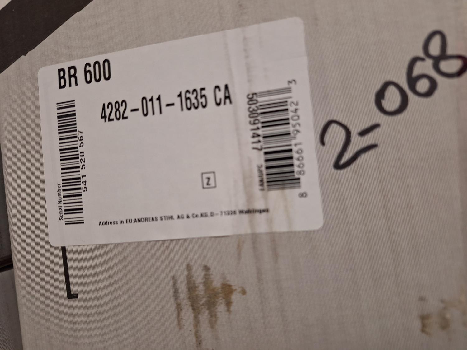 262 Stihl BR600 Gas Backpack Blower (Unused)