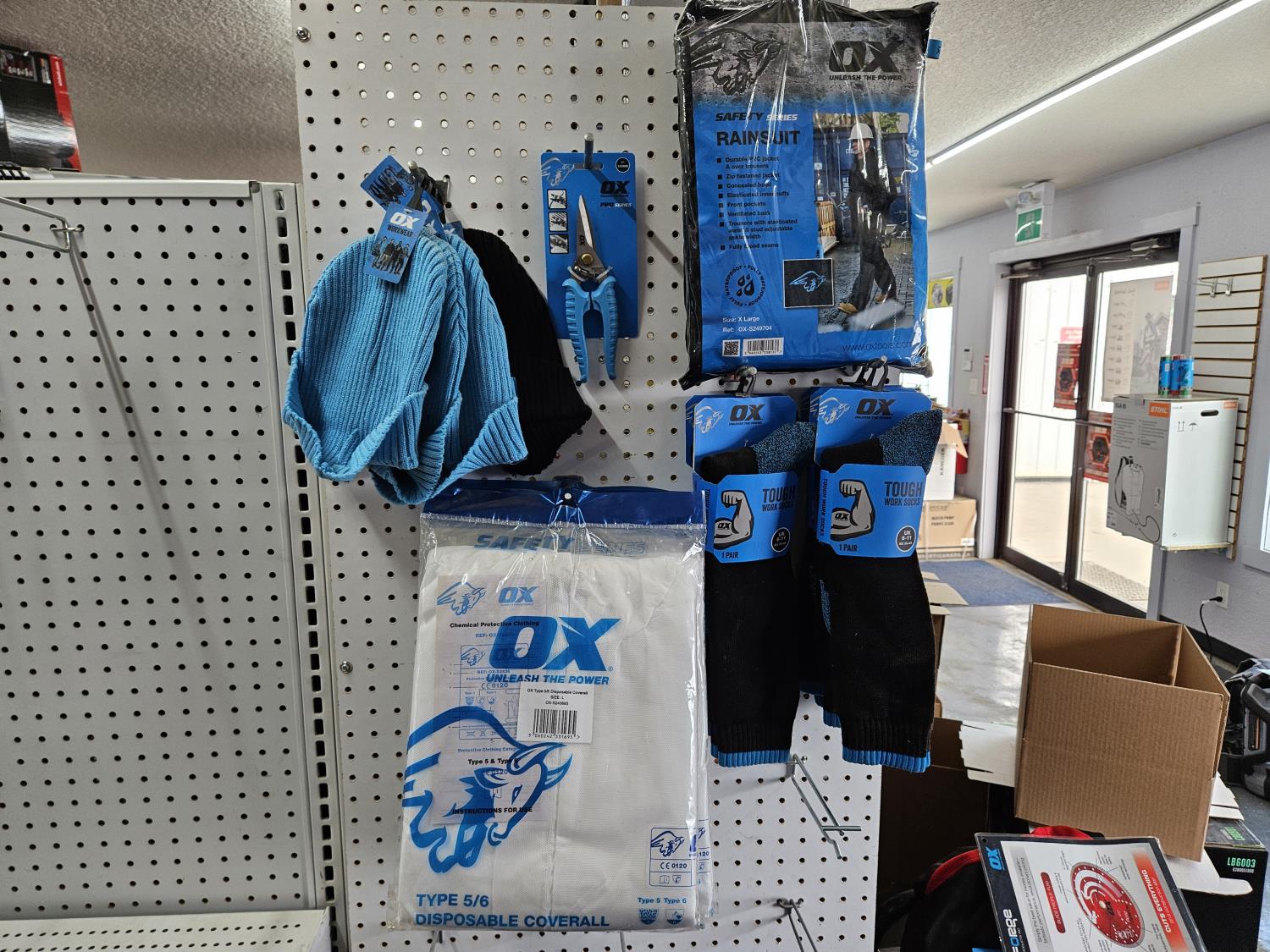 518 OX Toques, Socks, Coveralls, Rain Suit, Scissors (Unused)