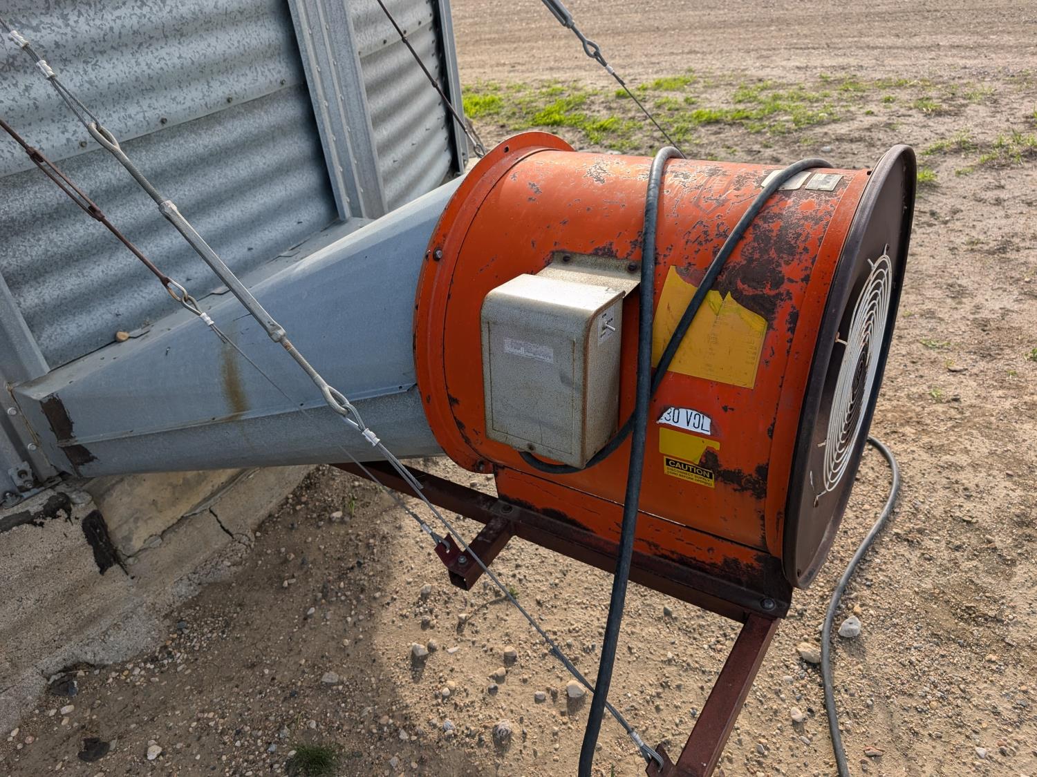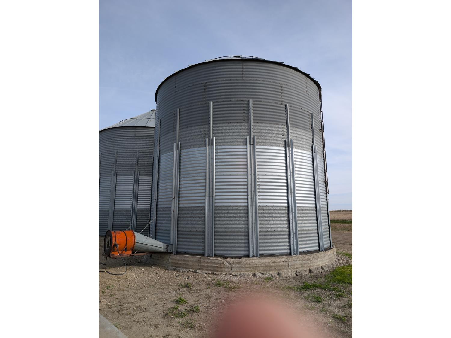 15,000± bu capacity, concrete floor, wall stiffeners, Sudenga unloading auger, floor aeration, Caldwell 10.5 HP 230 single phase aeration fan