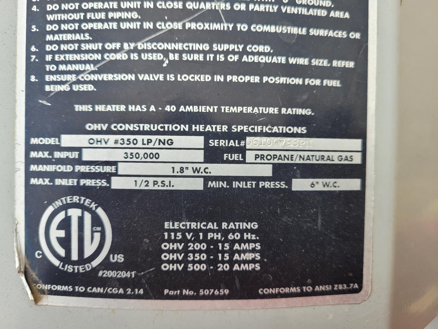 150 Frost Fighter OHV#350LP/NG 350,000 BTU Construction Heater