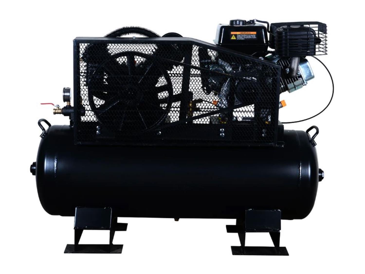 9 HP OHV Loncin engine, horizontal tank, 18.7 CFM @ 90 PSI