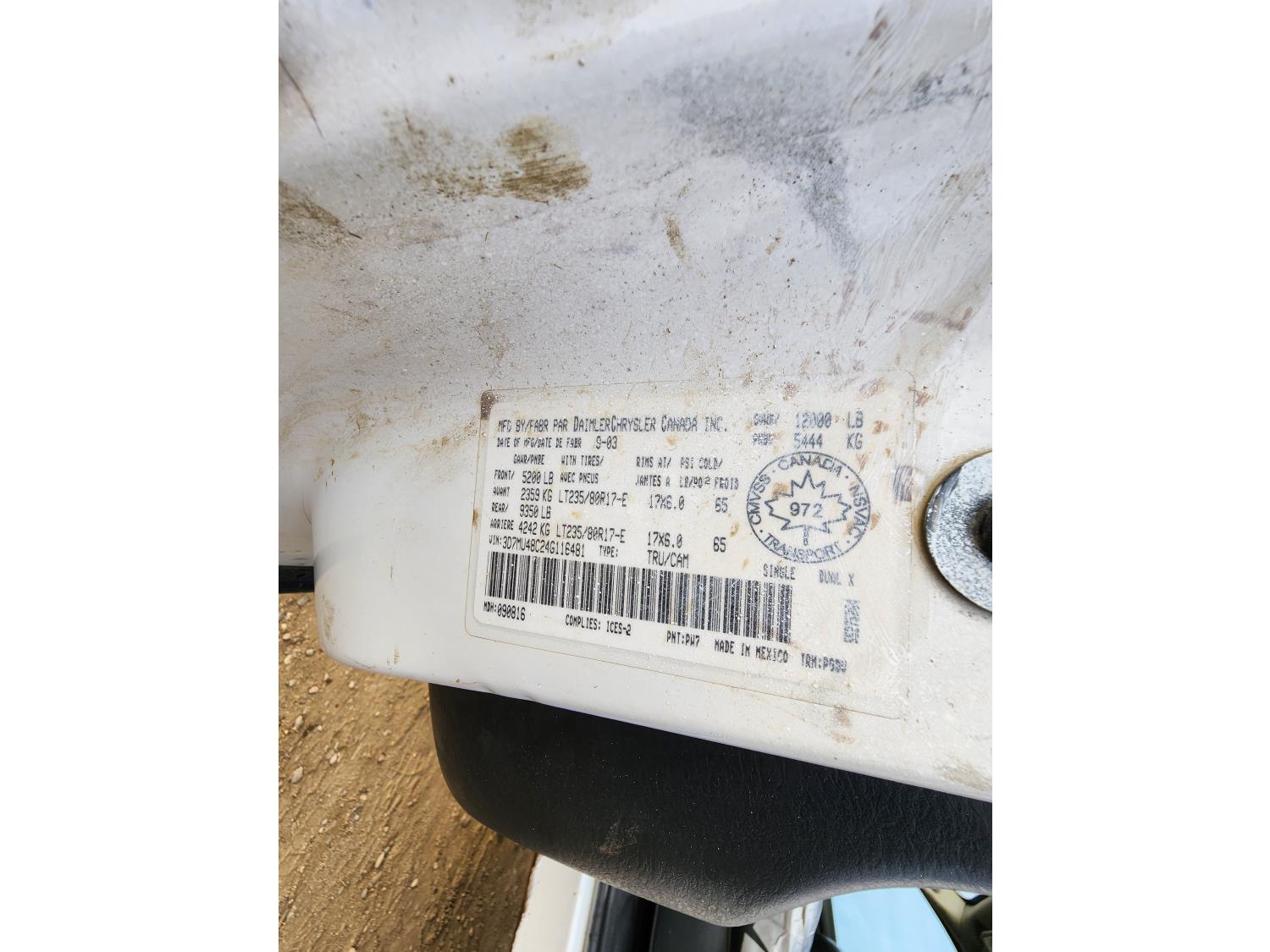 Cummins 5.9 L 6 cylinder diesel engine, 6 speed manual transmission, A/C, cruise control, LT235/80R17 tires