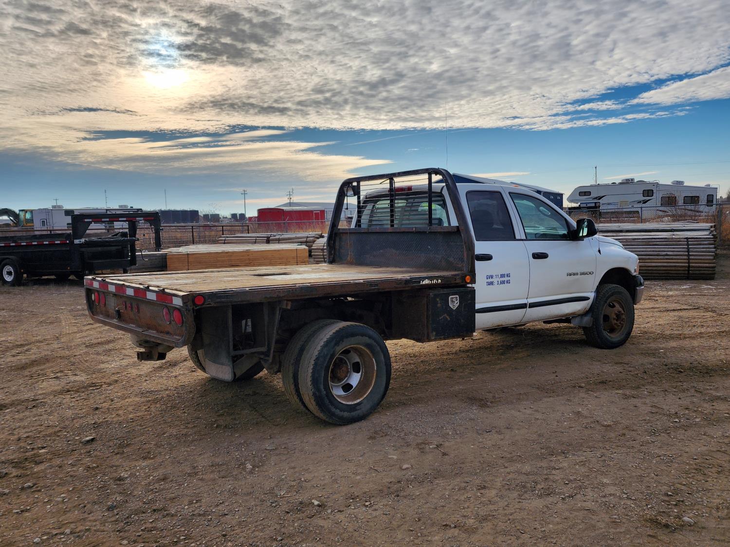 101 2004 Dodge Ram 3500 4X4 Dually Crew Cab Flat Deck Truck
