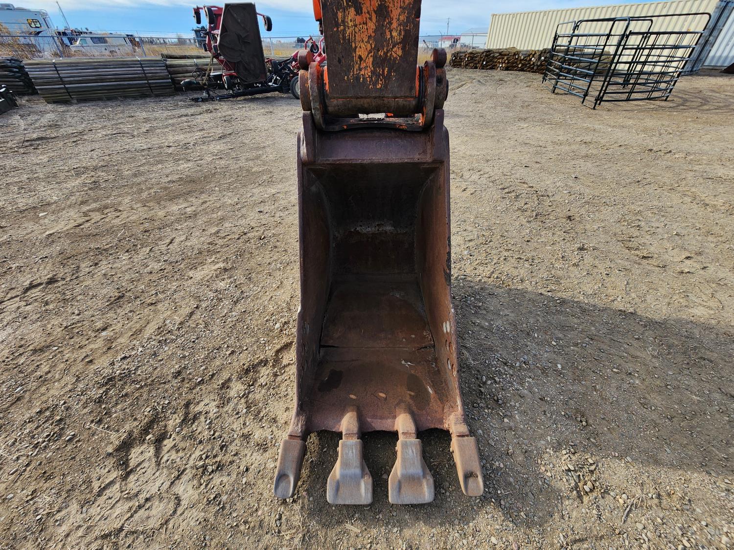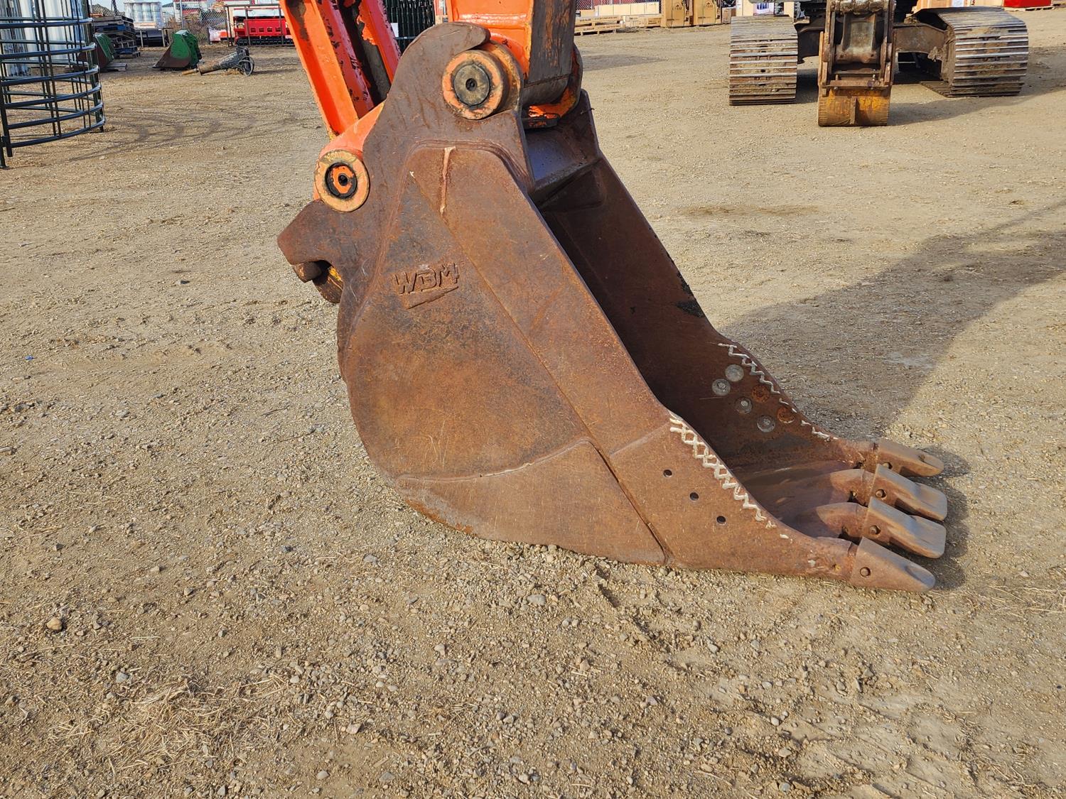 Enclosed cab, A/C, pilot controls, 28 inch dig bucket, Q/C coupler, 1 auxiliary hydraulics, catwalks, 31 inch track pads, triple grousers