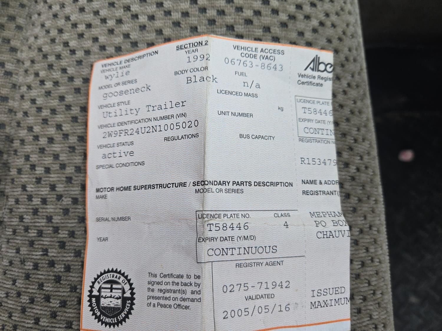 Copy of registration on hand. - Location: