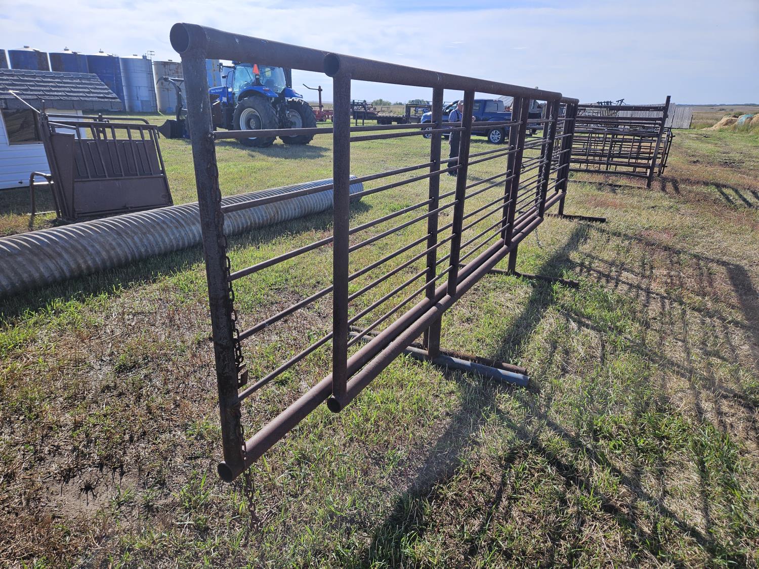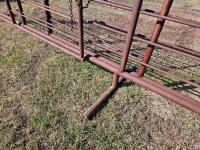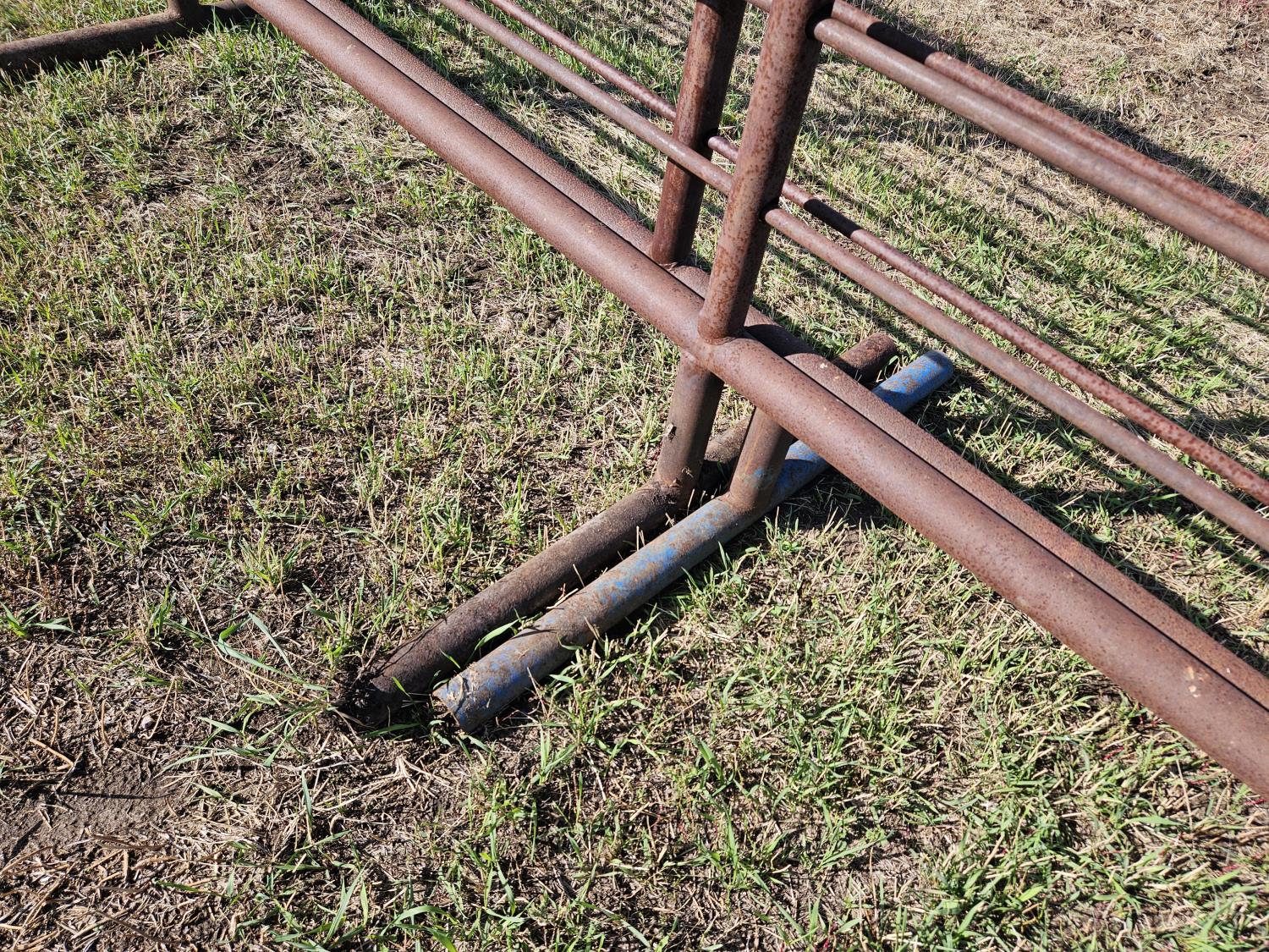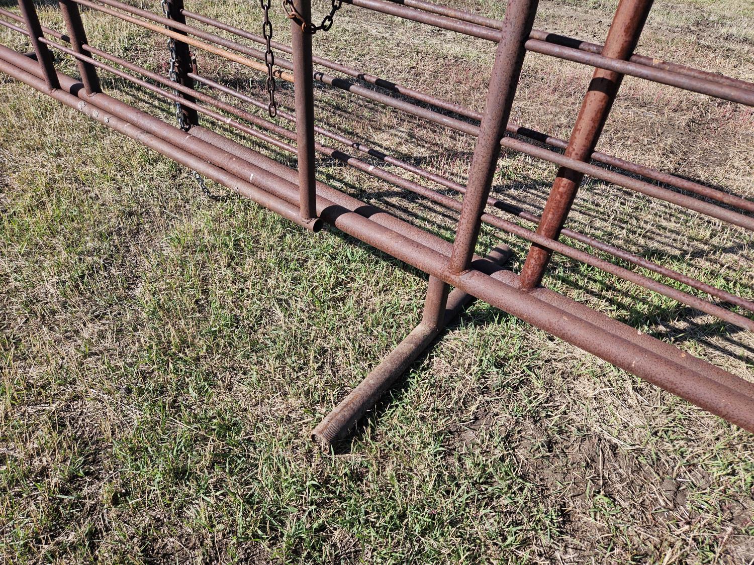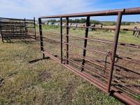 (1) 15 ft freestanding panel, (1) 24 ft freestanding panel w/10 ft gate, 2-7/8 and 2-3/8 pipe construction, 5 bar sucker rod rails