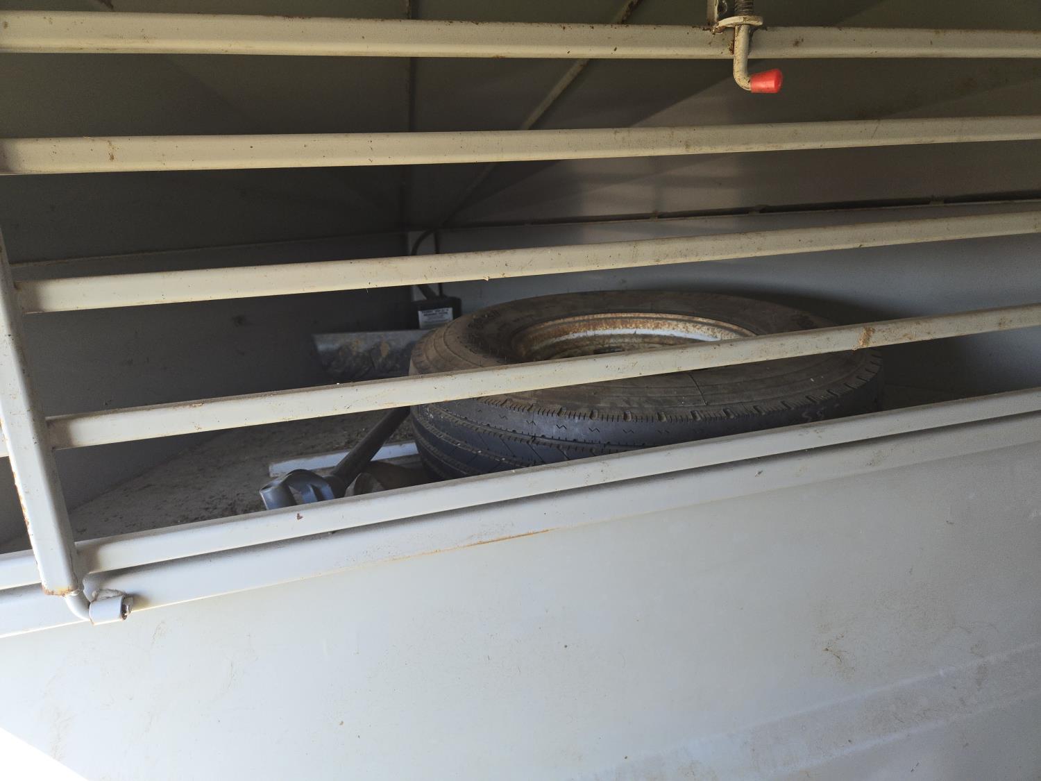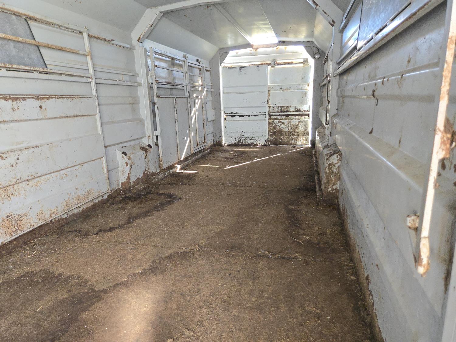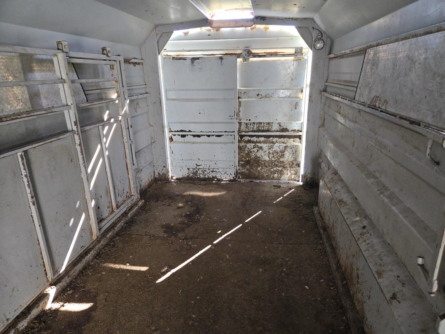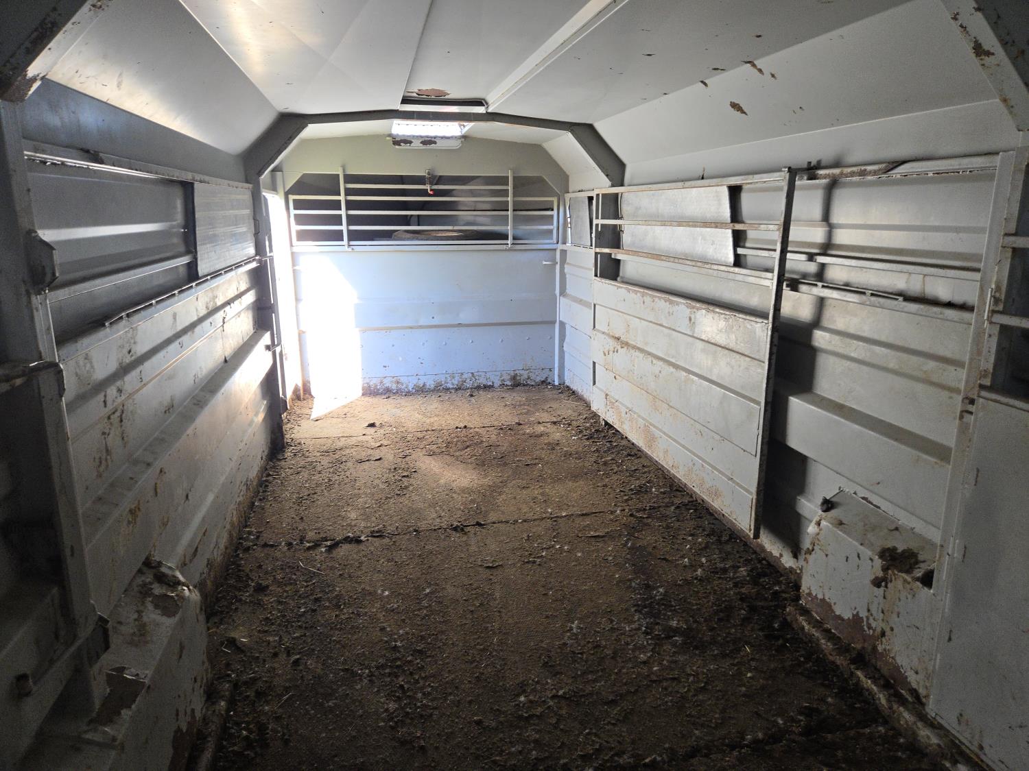 89 inch inside, 81 inch inside height, left hand 30 inch man door, rubber mats, G/N storage, torsion axles, (2) divider gates with doors, rear full swing with sliding door, 235/85R16 tires