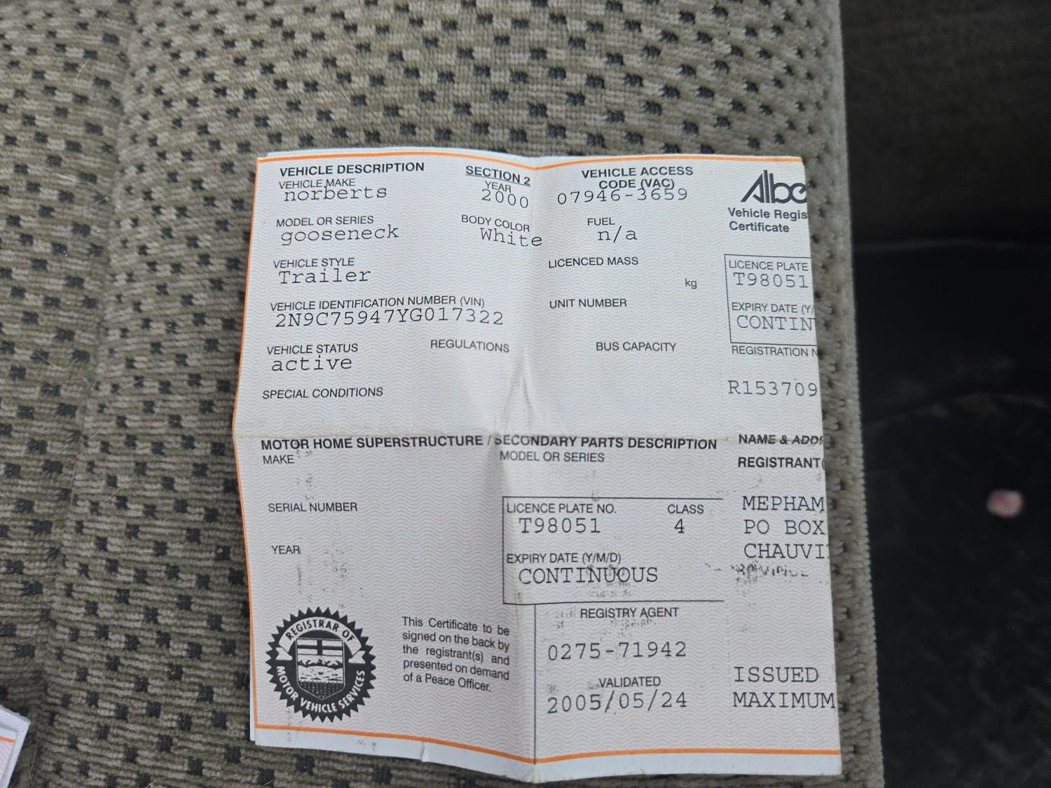 Copy of registration on hand. - Location: