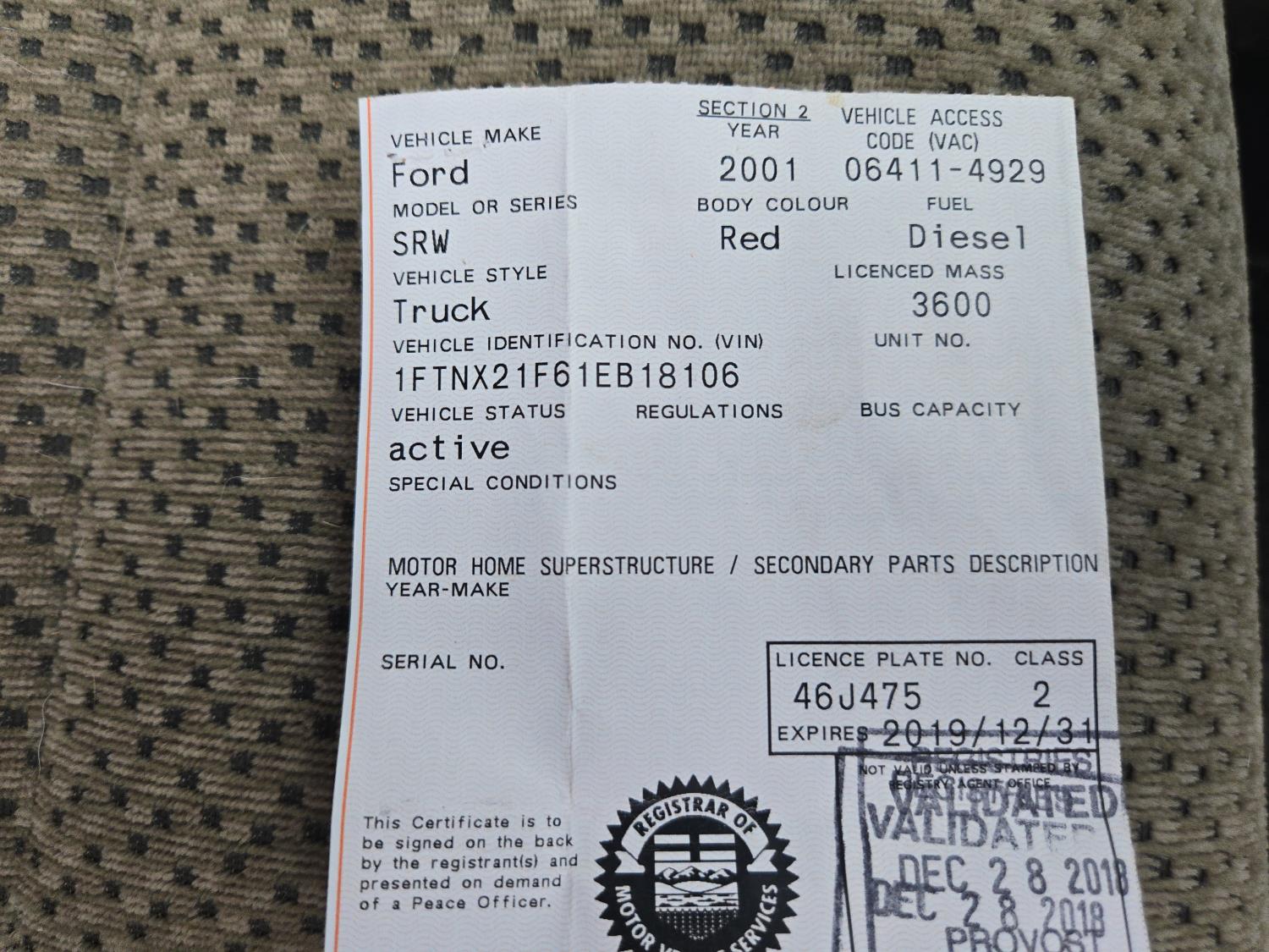 Copy of registration on hand. - Location: