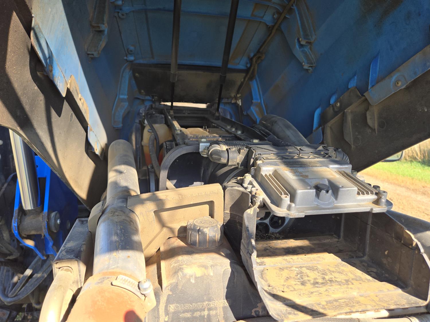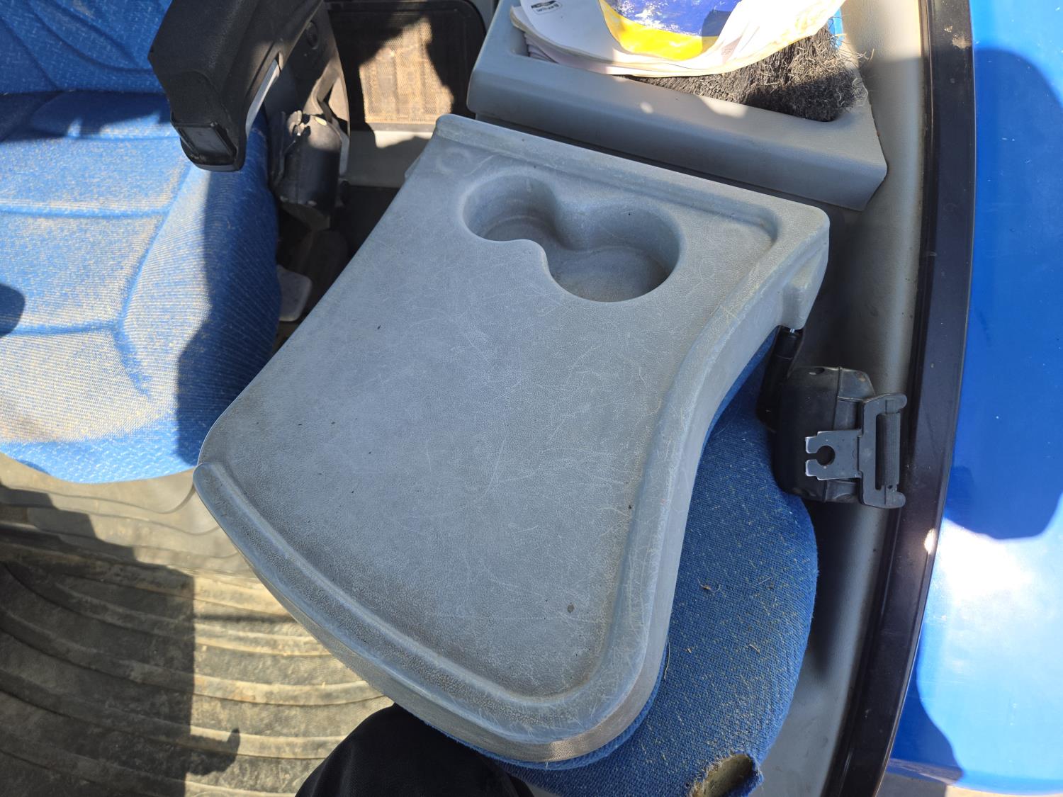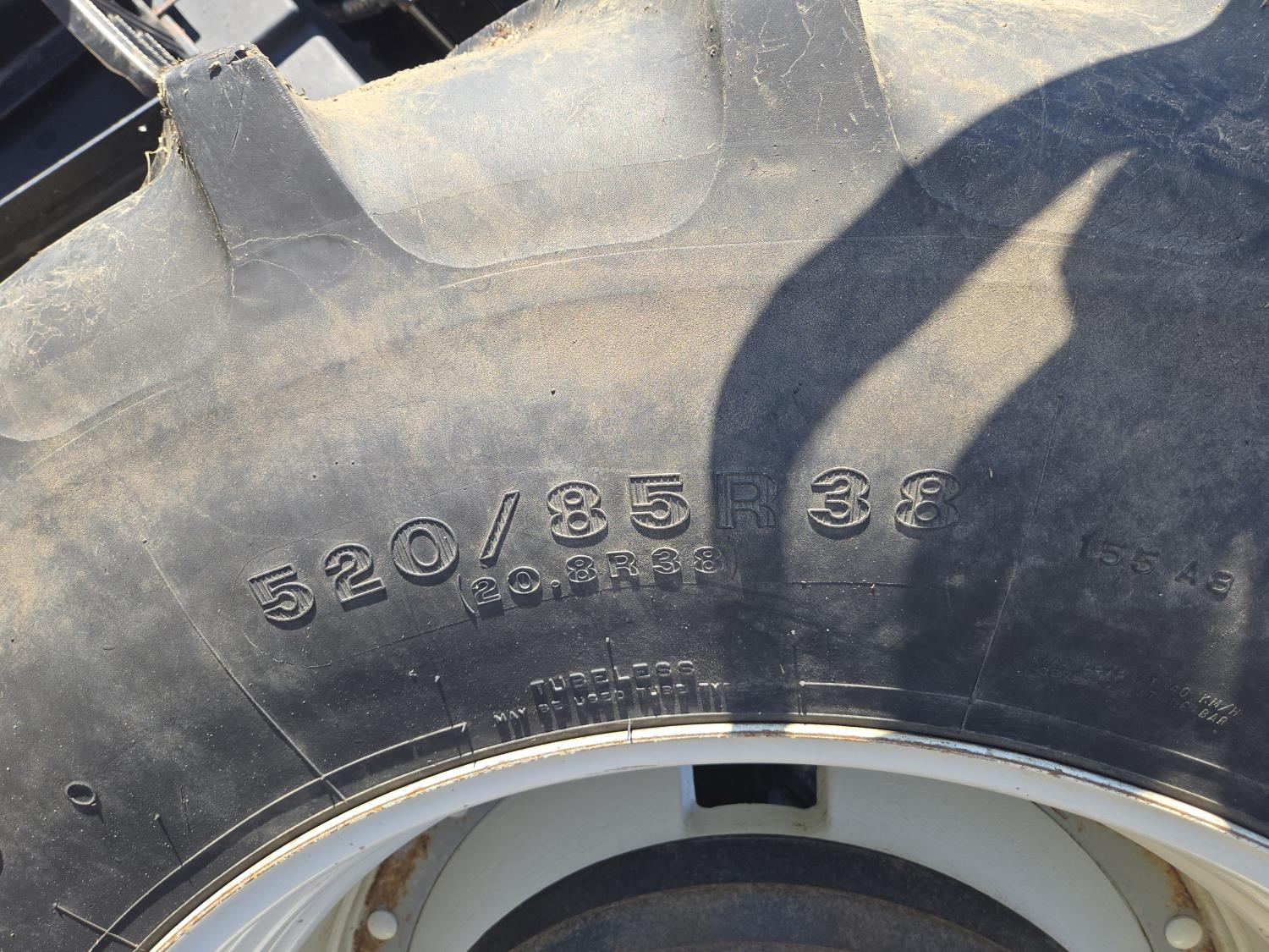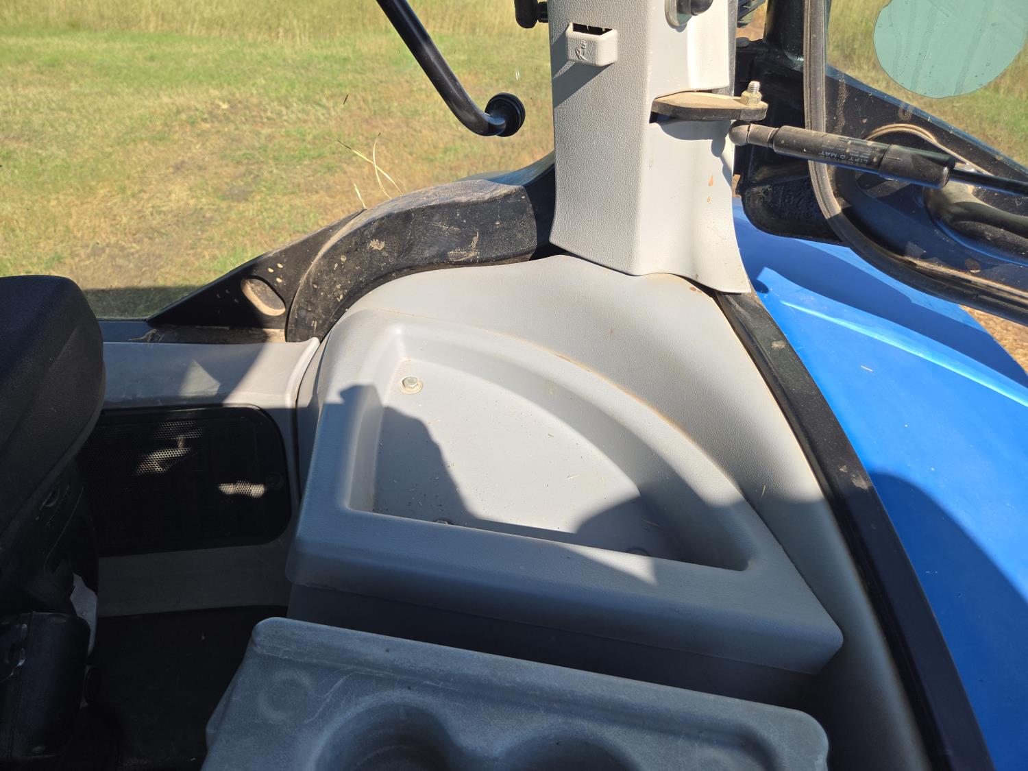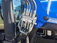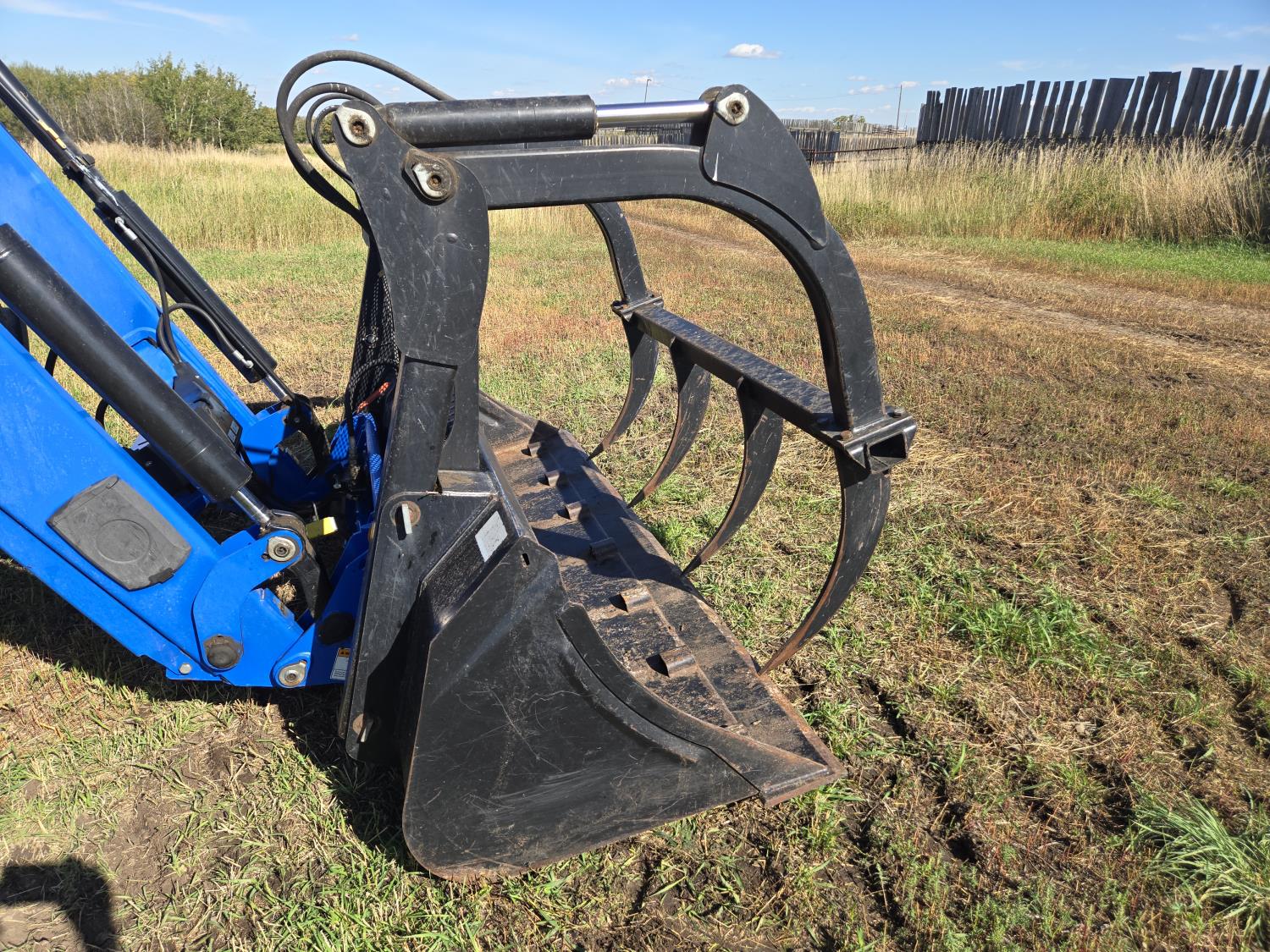 New Holland 850TL loader, Q/A, 91 inch bucket, grapple, mid mount hydraulic connection, FPT 6.7 6 cylinder 140 HP, engine, 120 PTO HP, 18 speed power shift transmission, cab, left hand reverser, joystick, A/C, radio, buddy seat, 540/1000 PTO, 4 rear hydraulic outlets, rear wheel weights, 420/85R28 front tires, 520/85R38 rear tires, NO 3 PTH Arms