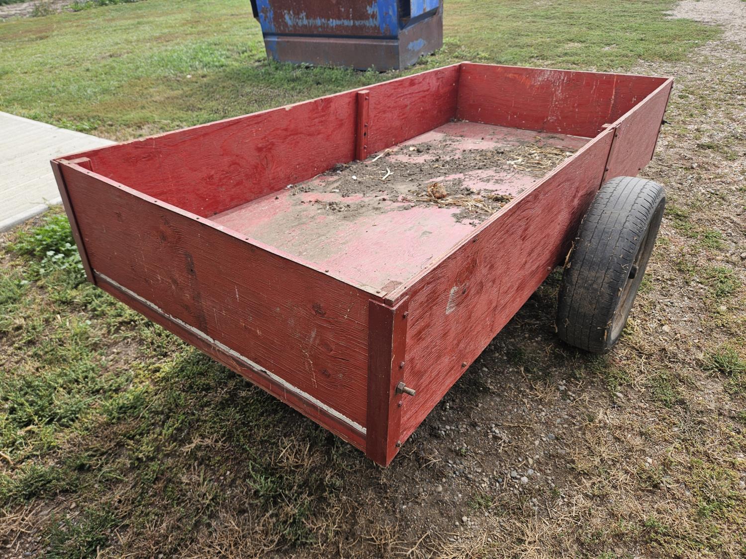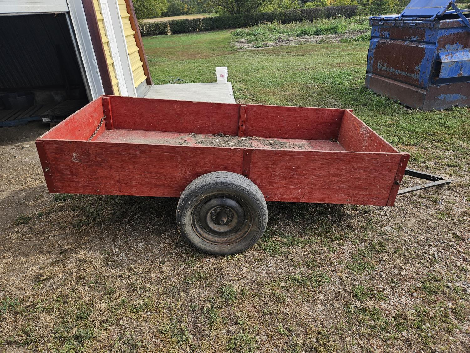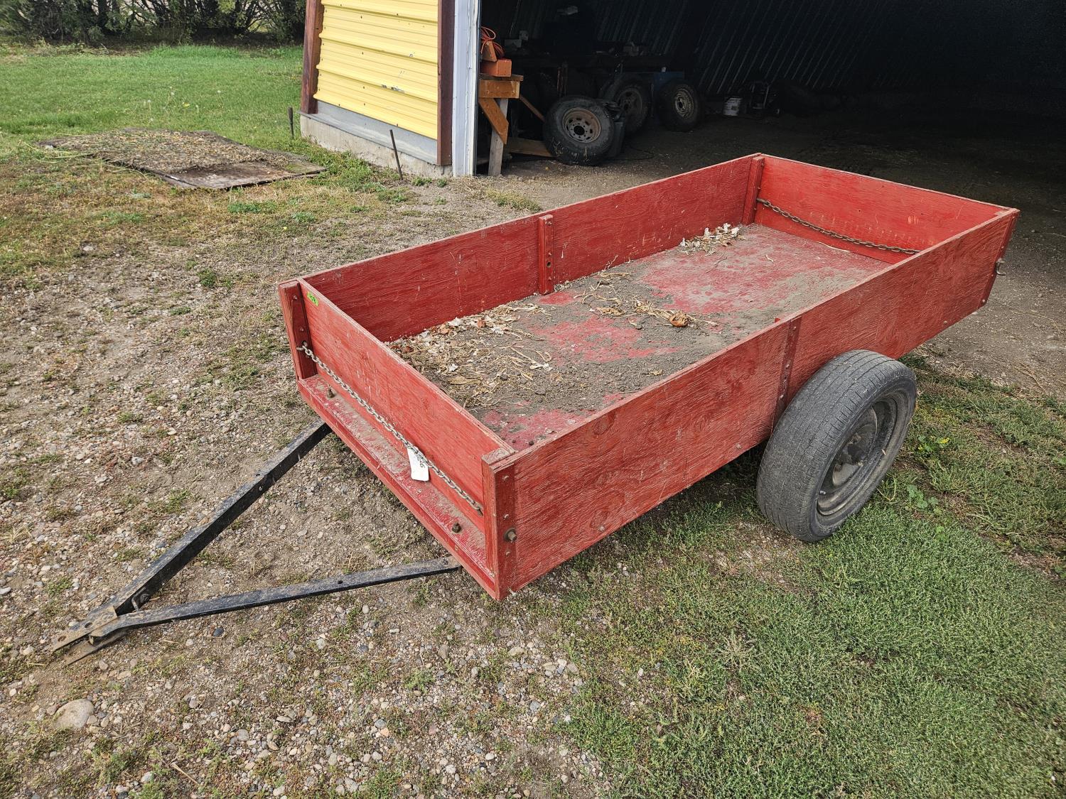 45 inch wide, wood sides, drop pin hitch, 195/65R15 tires, off road use only