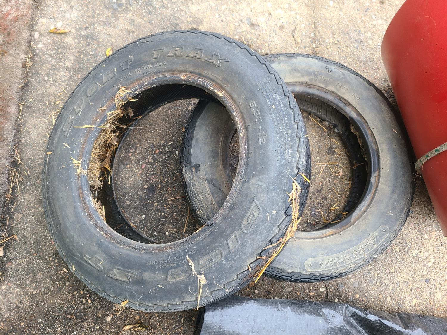 21 Roll of Tin, Qty of Weather Wrap & (2) Tires