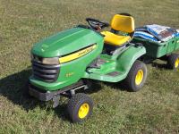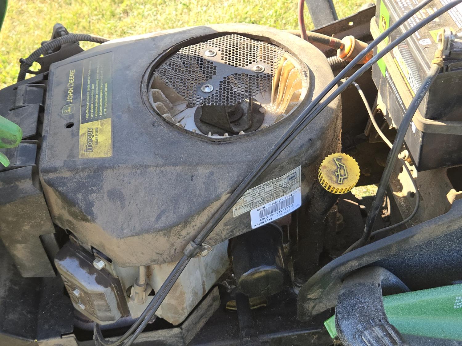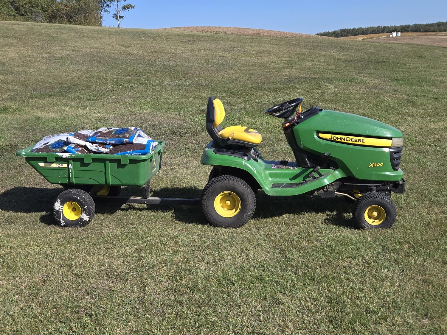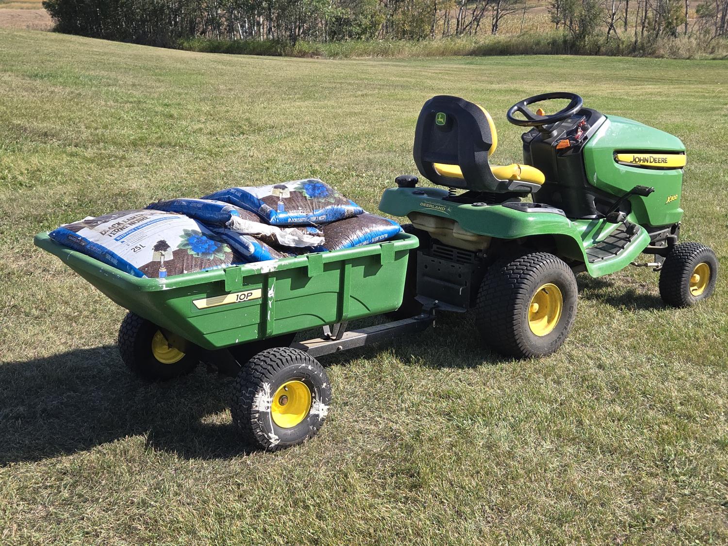 Kawasaki 17 HP twin cylinder engine, hydro transmission, John Deere 10P garden trailer with 12 bags of black dirt, NOTE: this tractor does not have a mower deck