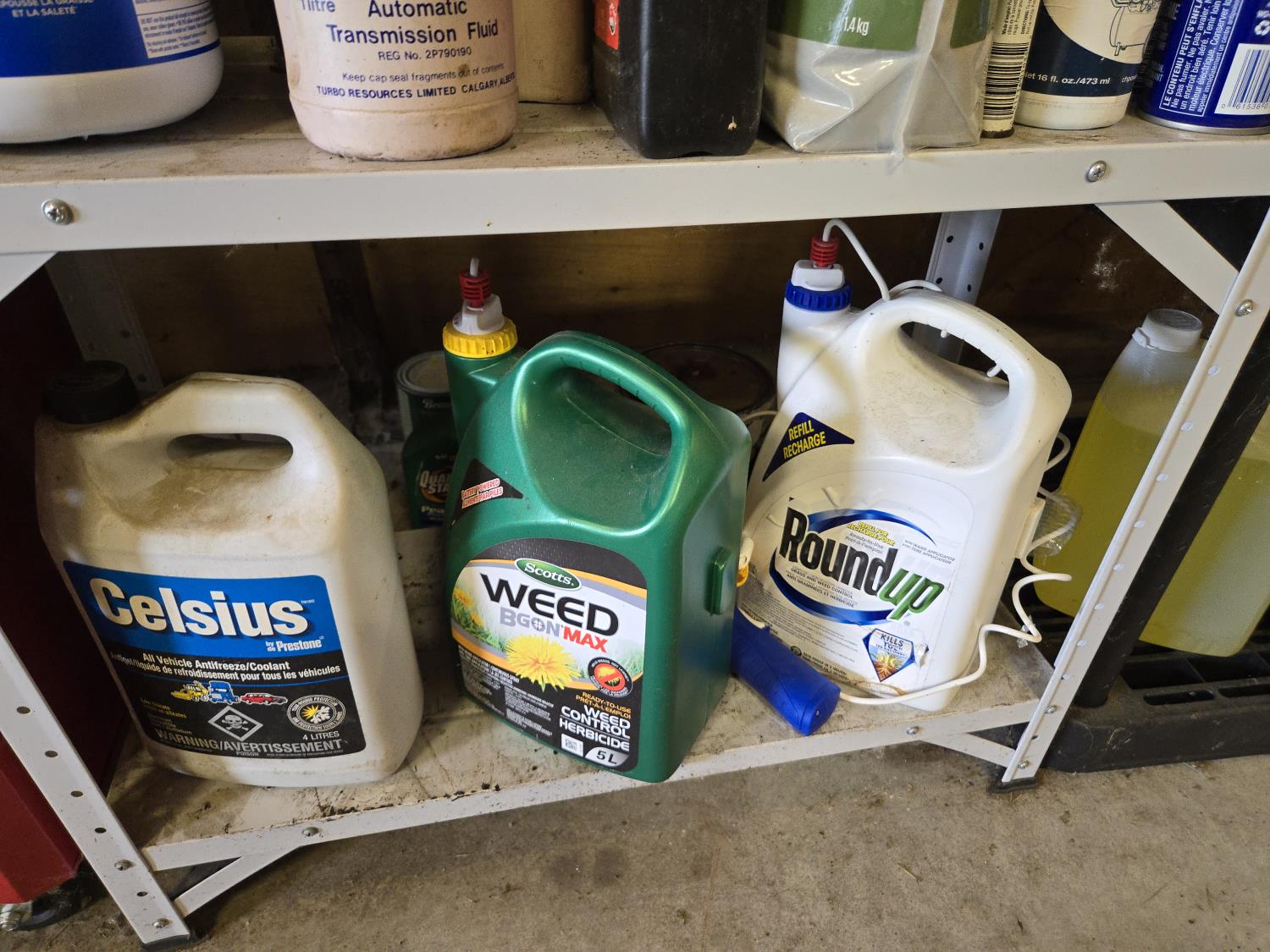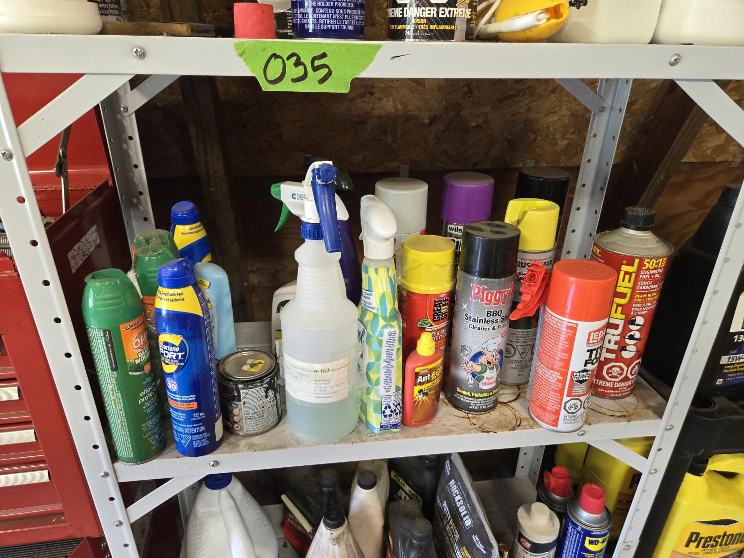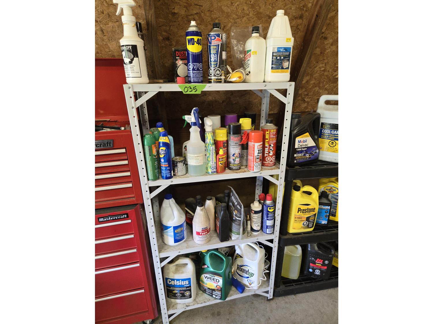 258 Metal Shelf Unit with Qty of Shop Fluids