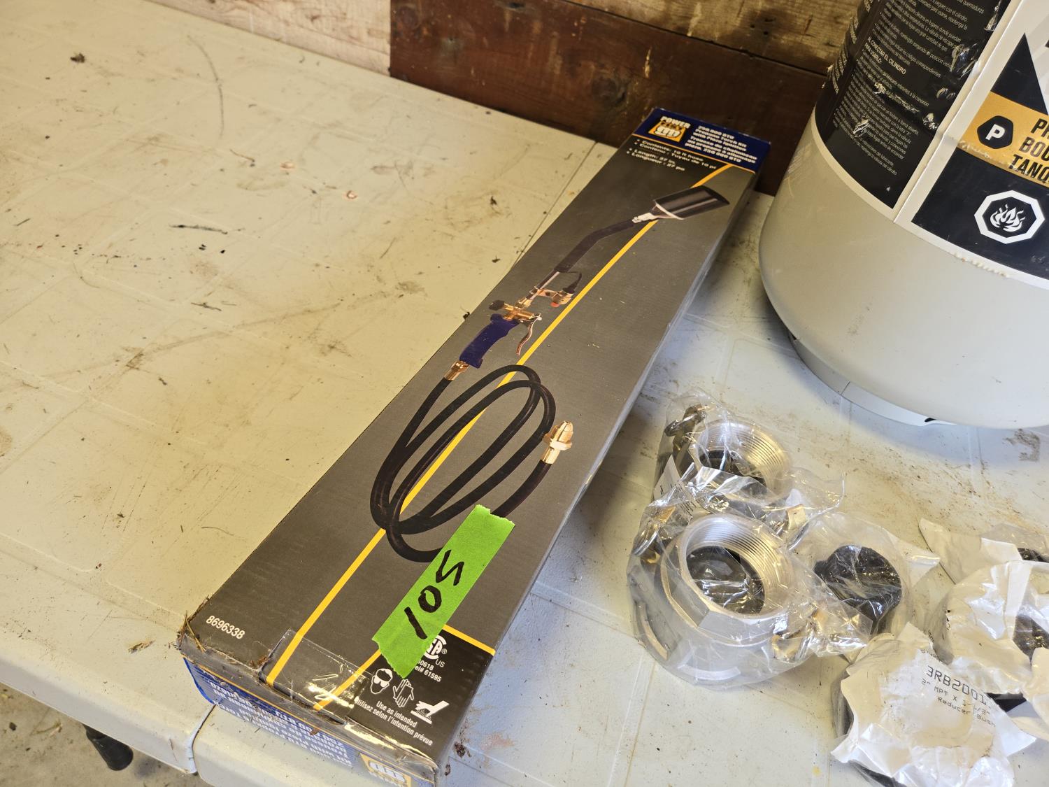 253 Powerfist Propane Tiger Torch, New 30 lb Propane Bottle (Full) (2) Camlocks & Misc Fittings