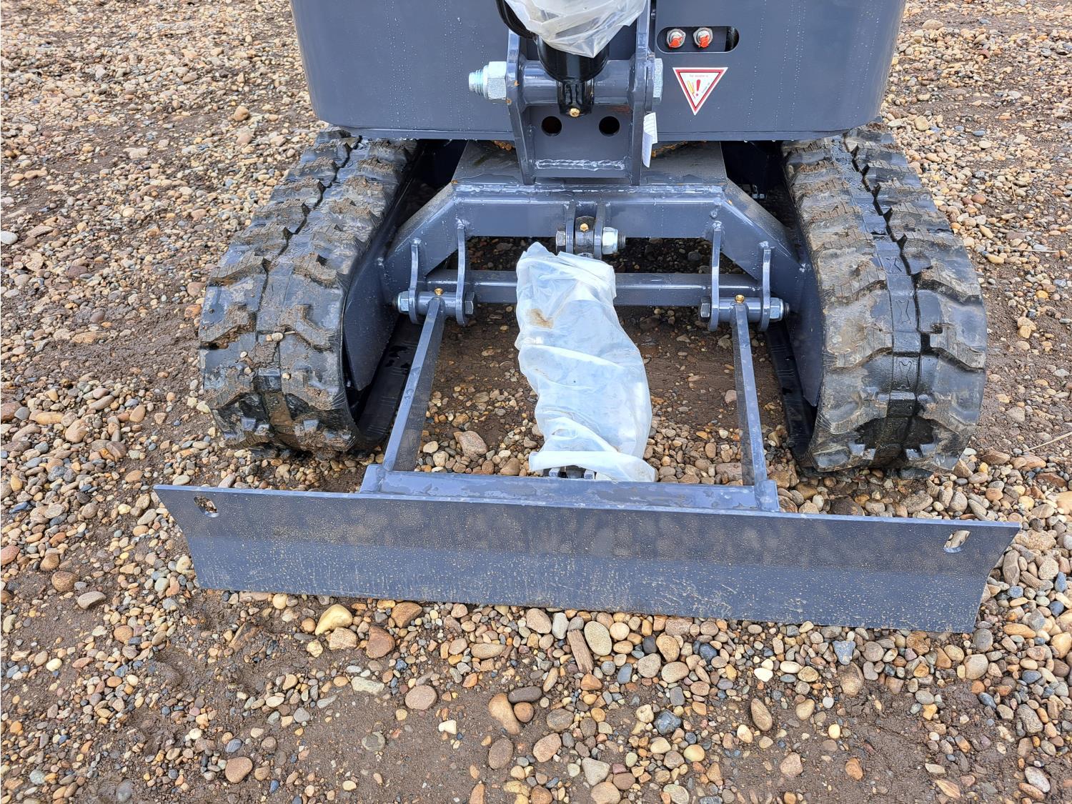 Open station, gas engine, dig bucket, manual thumb, backfill blade, 7 inch rubber tracks