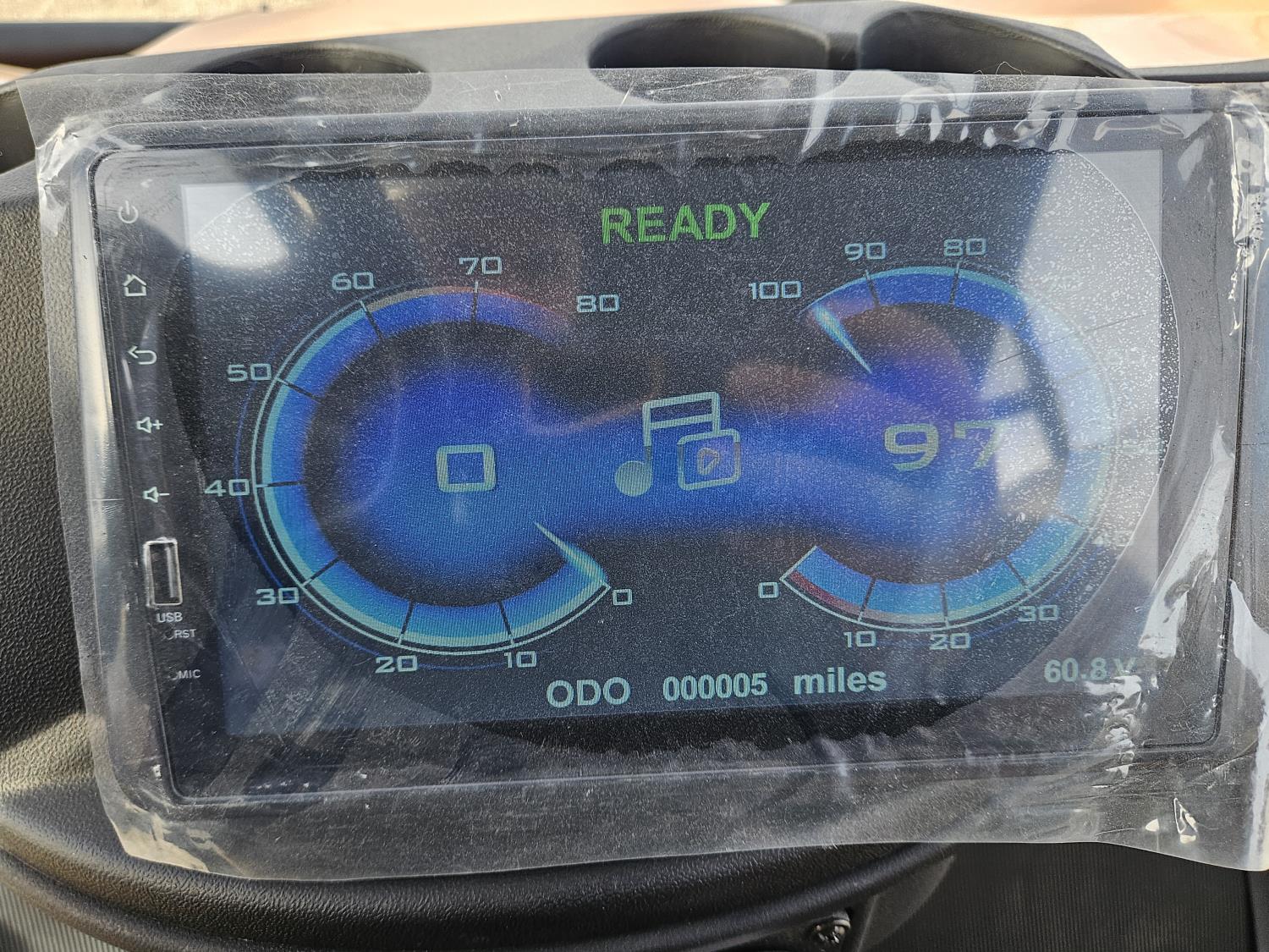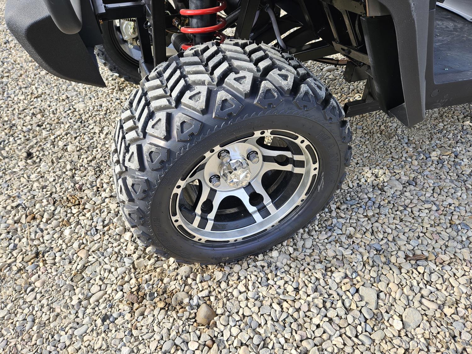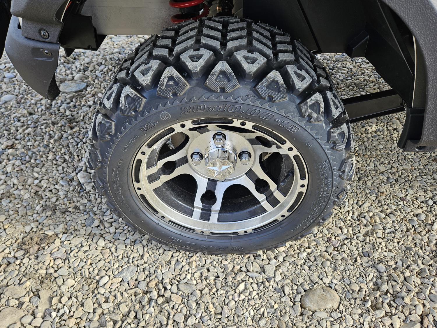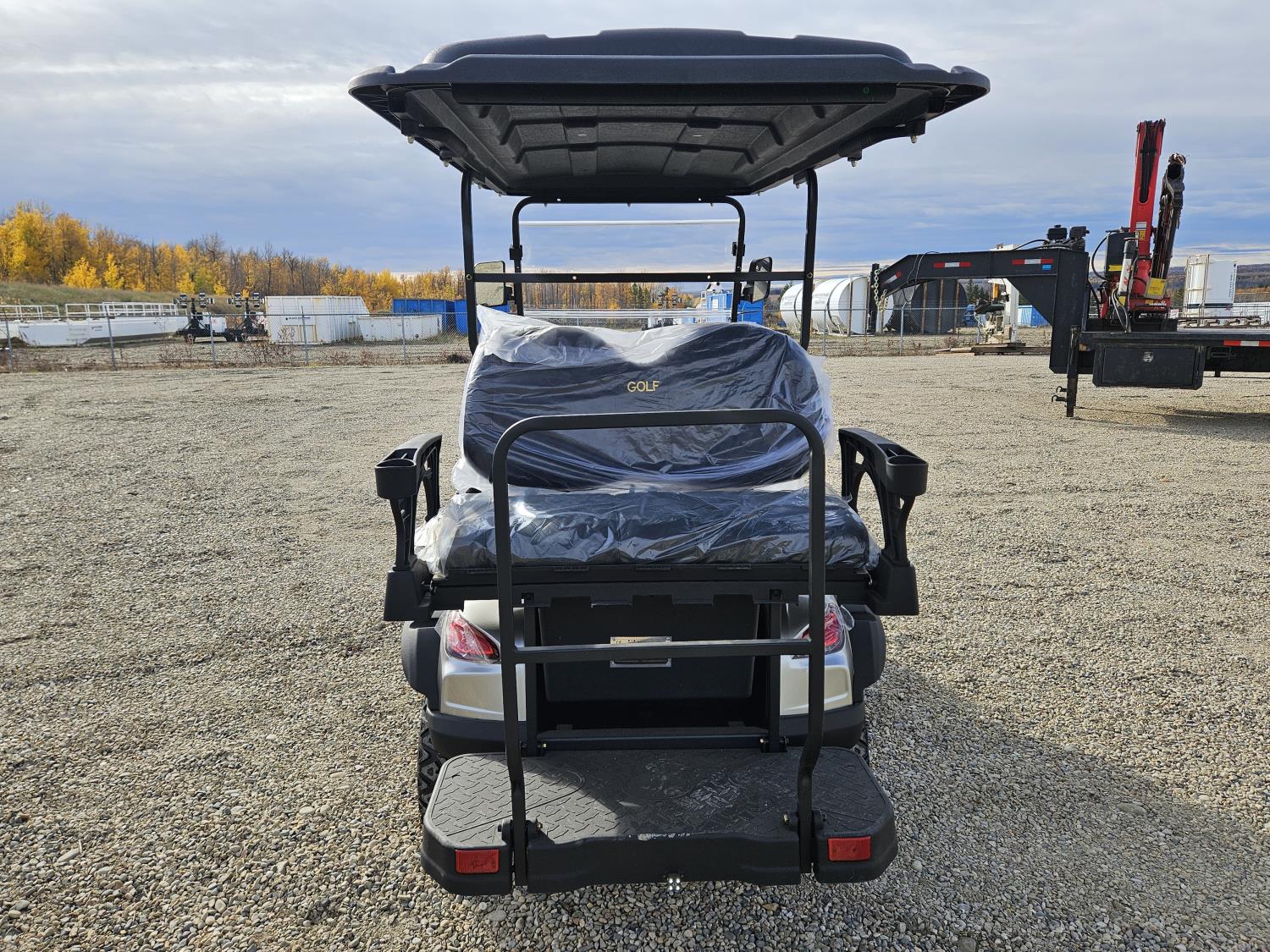 4 passengers, canopy, windshield, reverse, charger, backup camera, 80km range, 38kph top speed, 4000 watt motor, 20X10.00-12 tires
