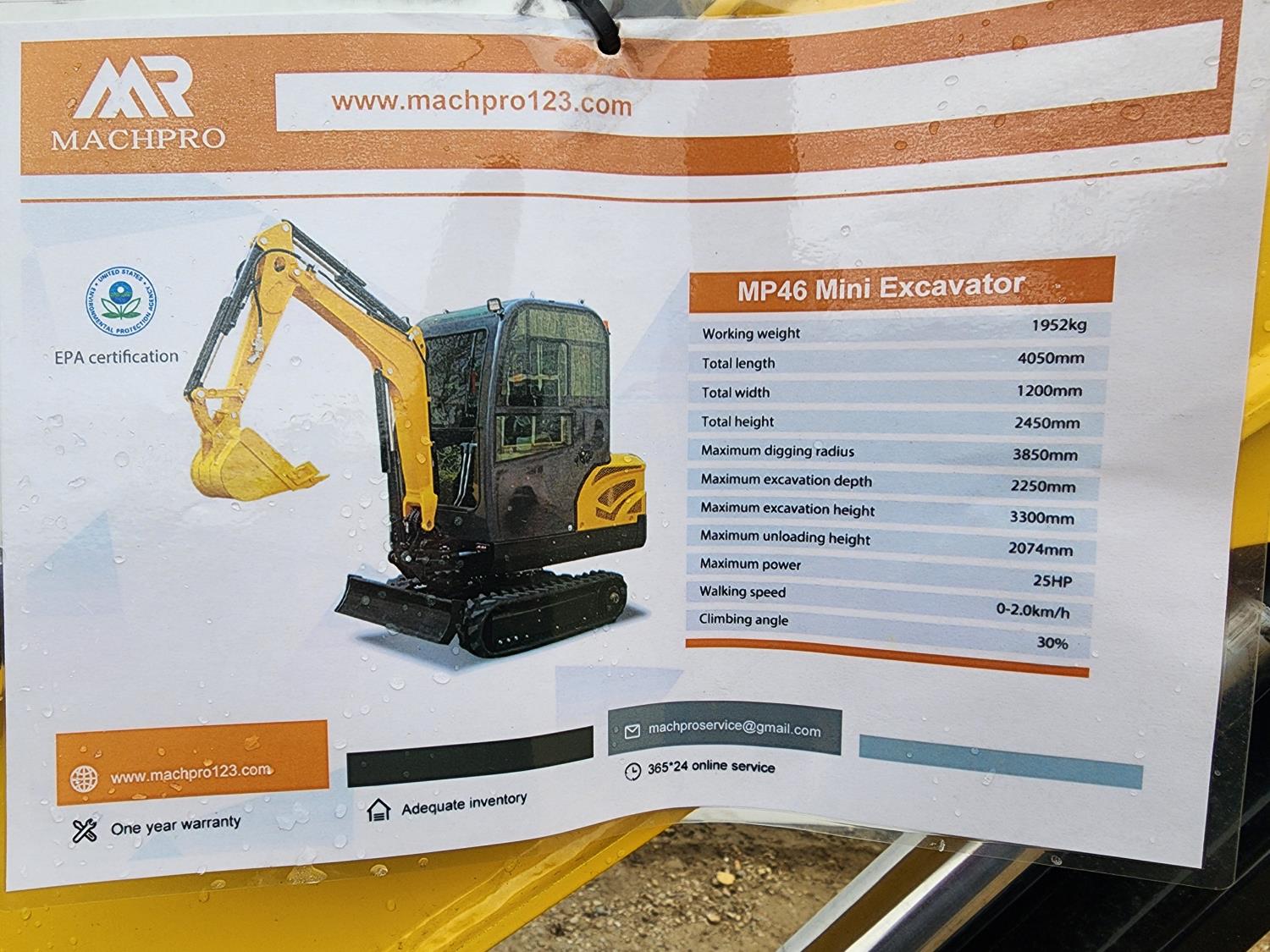 3078 2024 Machpro MP46 2.5 Ton Mini Excavator (Unused)