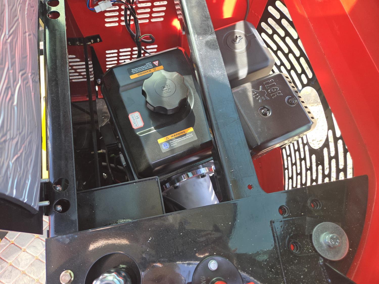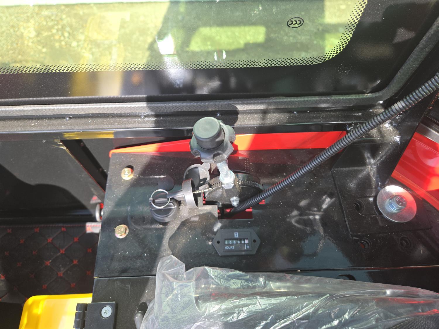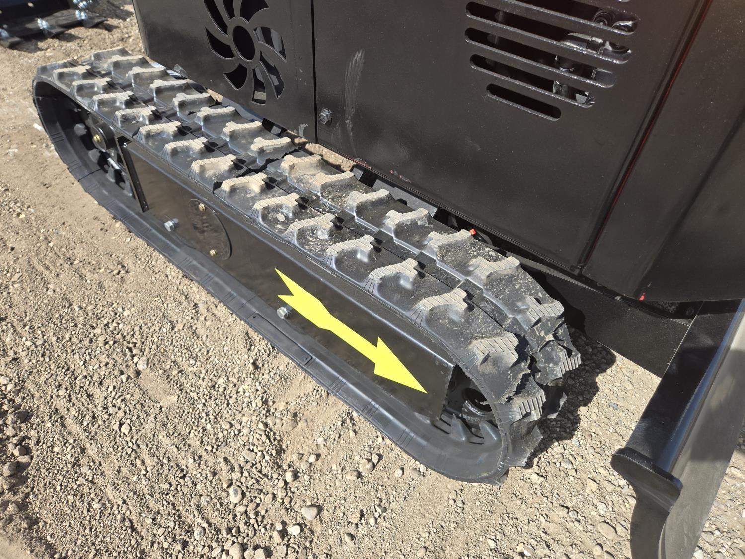 Enclosed cab, gas engine, 16 inch dig bucket, manual thumb, 2 Ft 6 inch stick, backfill blade, 7 inch rubber tracks