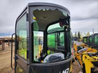 Enclosed cab, gas engine, 12 inch bucket, manual thumb, 2 Ft 6 inch stick, backfill blade, 7 inch rubber tracks