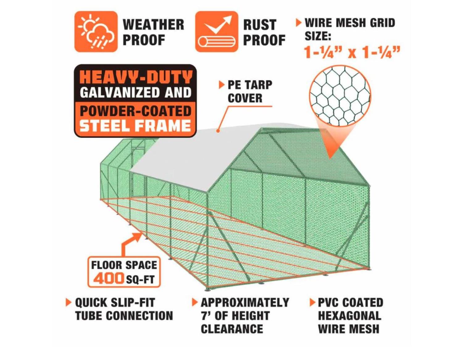 Galvanized Steel, 400 Sq-Ft, Lockable Gate, PVC Coated Mesh
