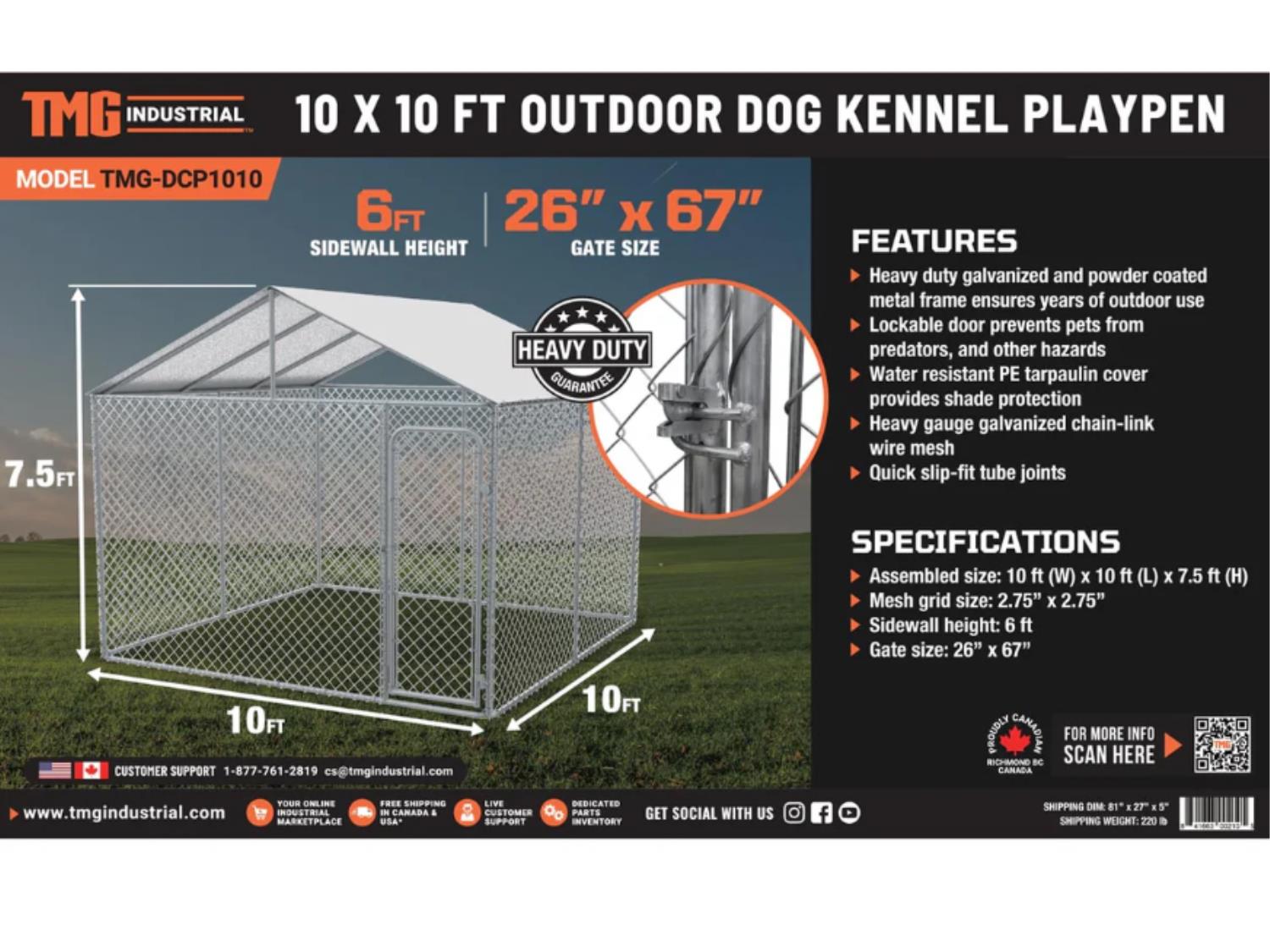 3165 TMG Industrial TMG-DCP1010 10 Ft X 10 Ft Outdoor Dog Kennel Playpen W/Cover (Unused)