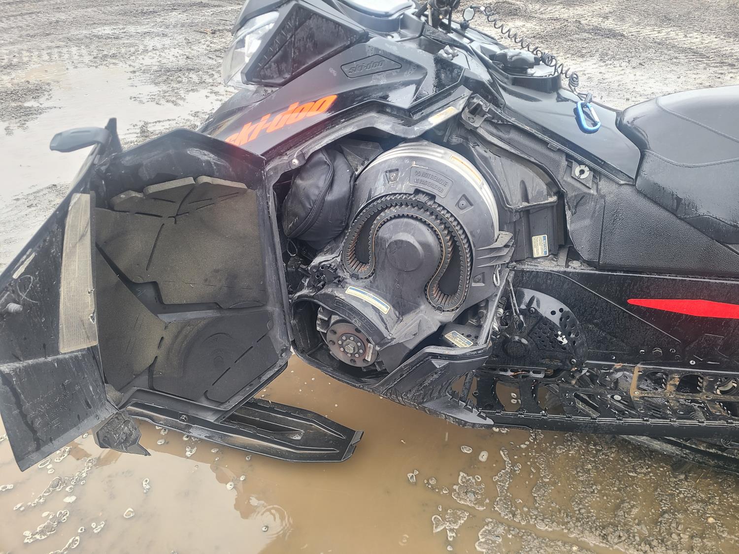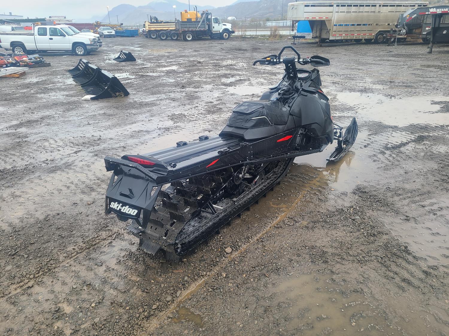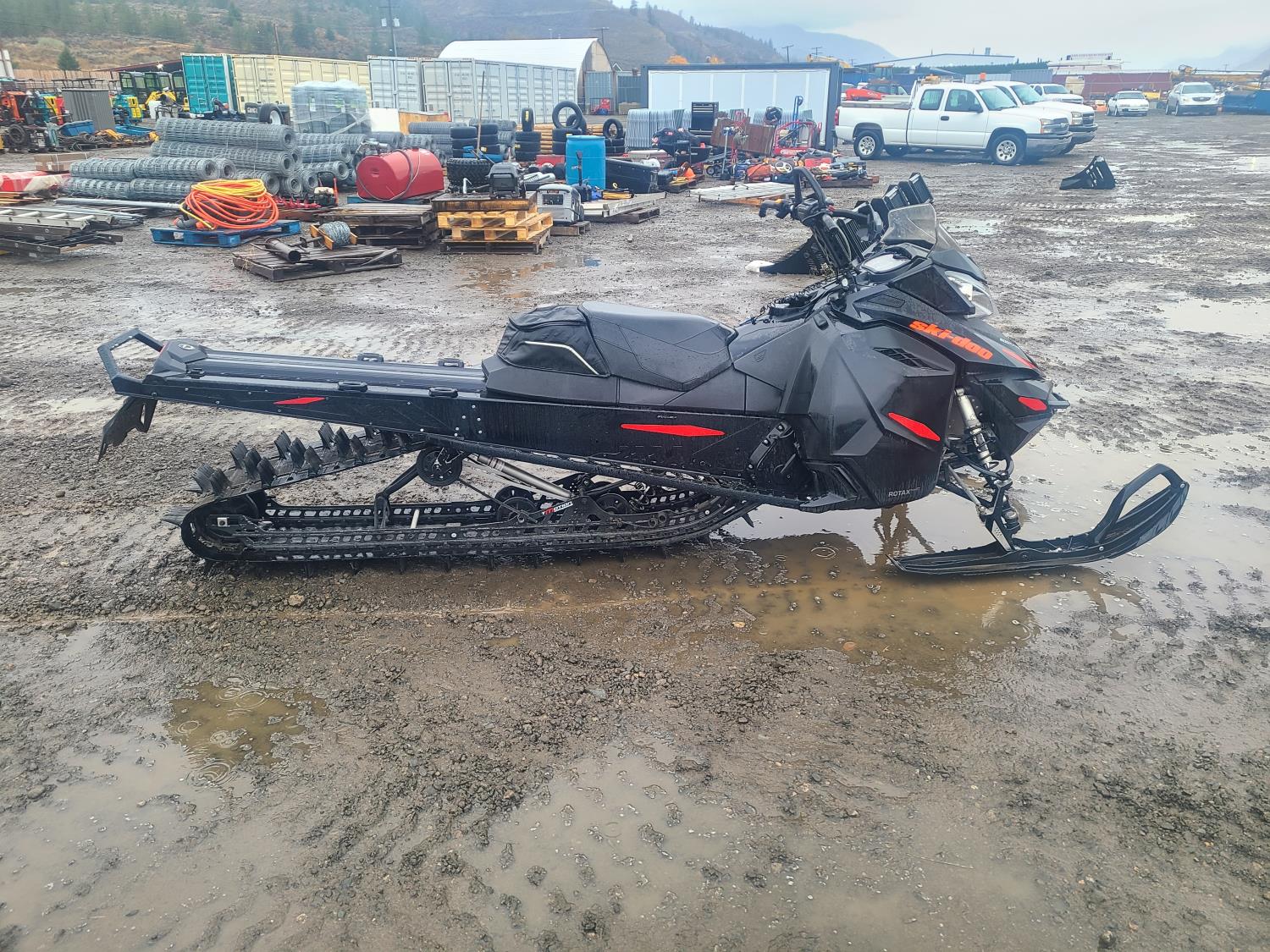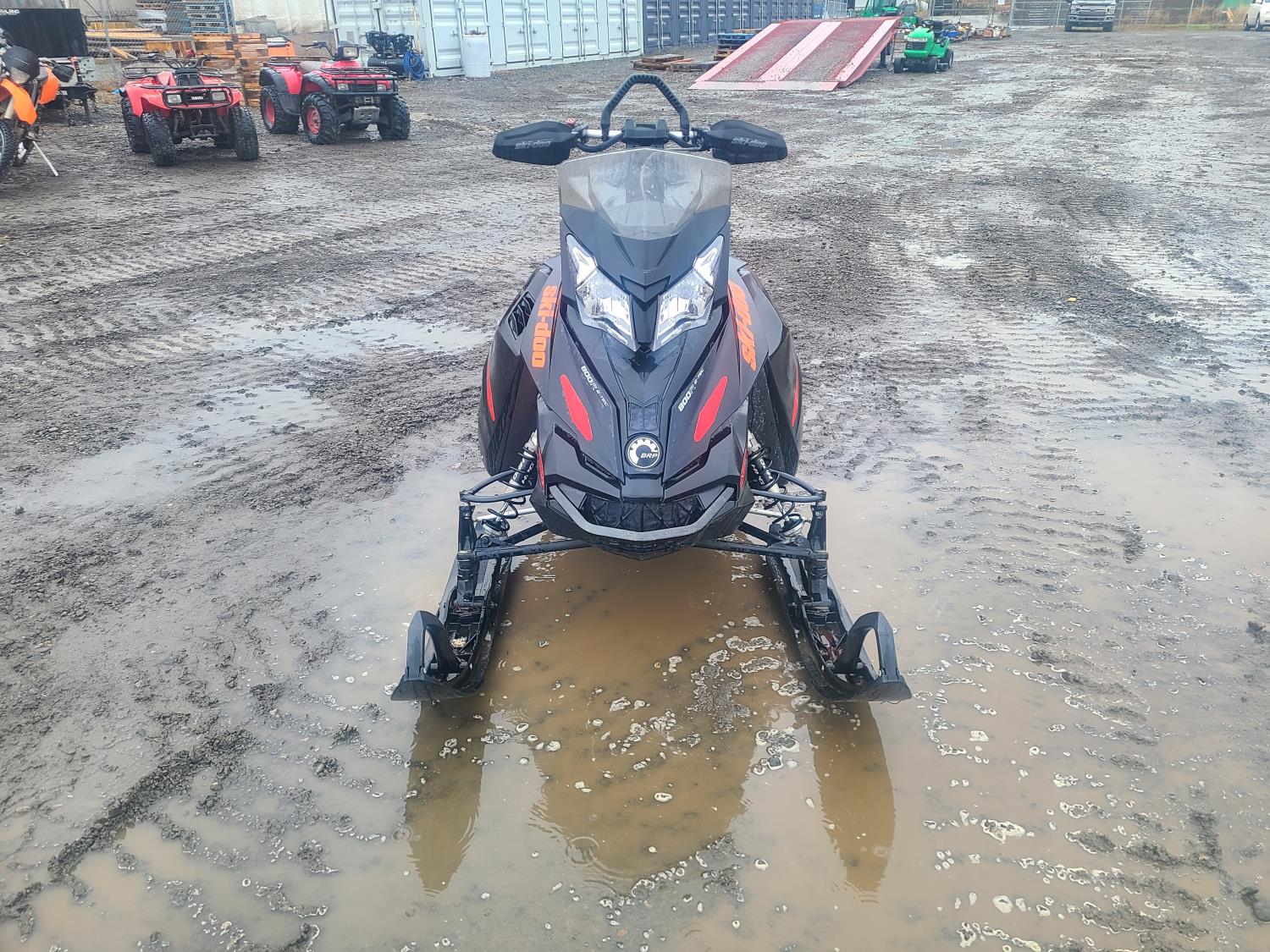 799.5 cc skidoo/Horizontal in-line 2 cylinder fuel injected liquid cooled engine, electric start, reverse, windshield, hand and thumb warmers, high rise handlebars, 165 inch track, 2.5 inch paddles, scratchers, Dual carbide skags