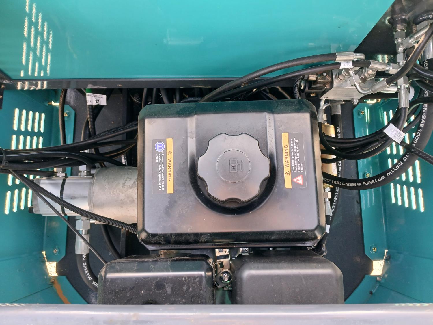 Open station, gas engine, 16 inch dig bucket, manual coupler, manual thumb, 31 inch stick, backfill blade, 7 inch rubber tracks