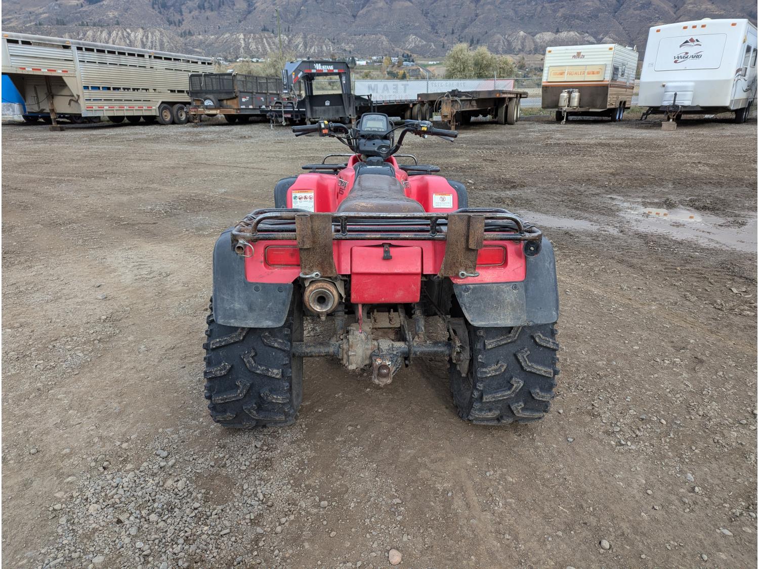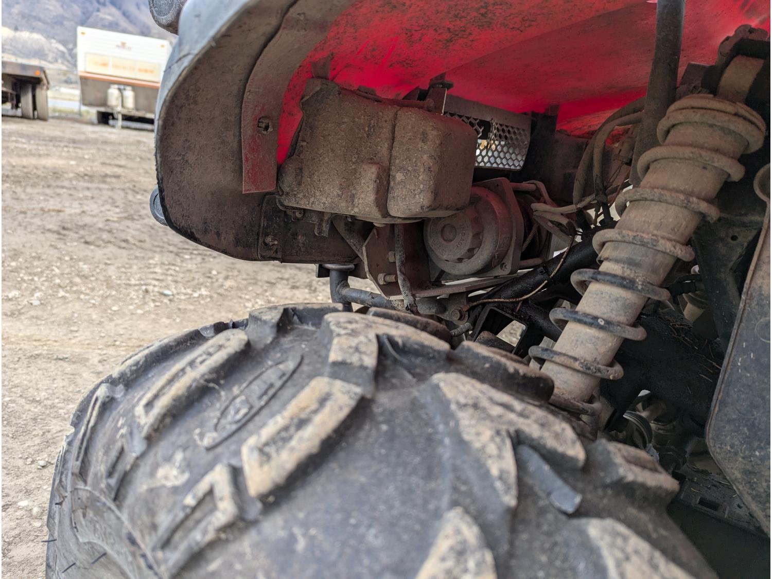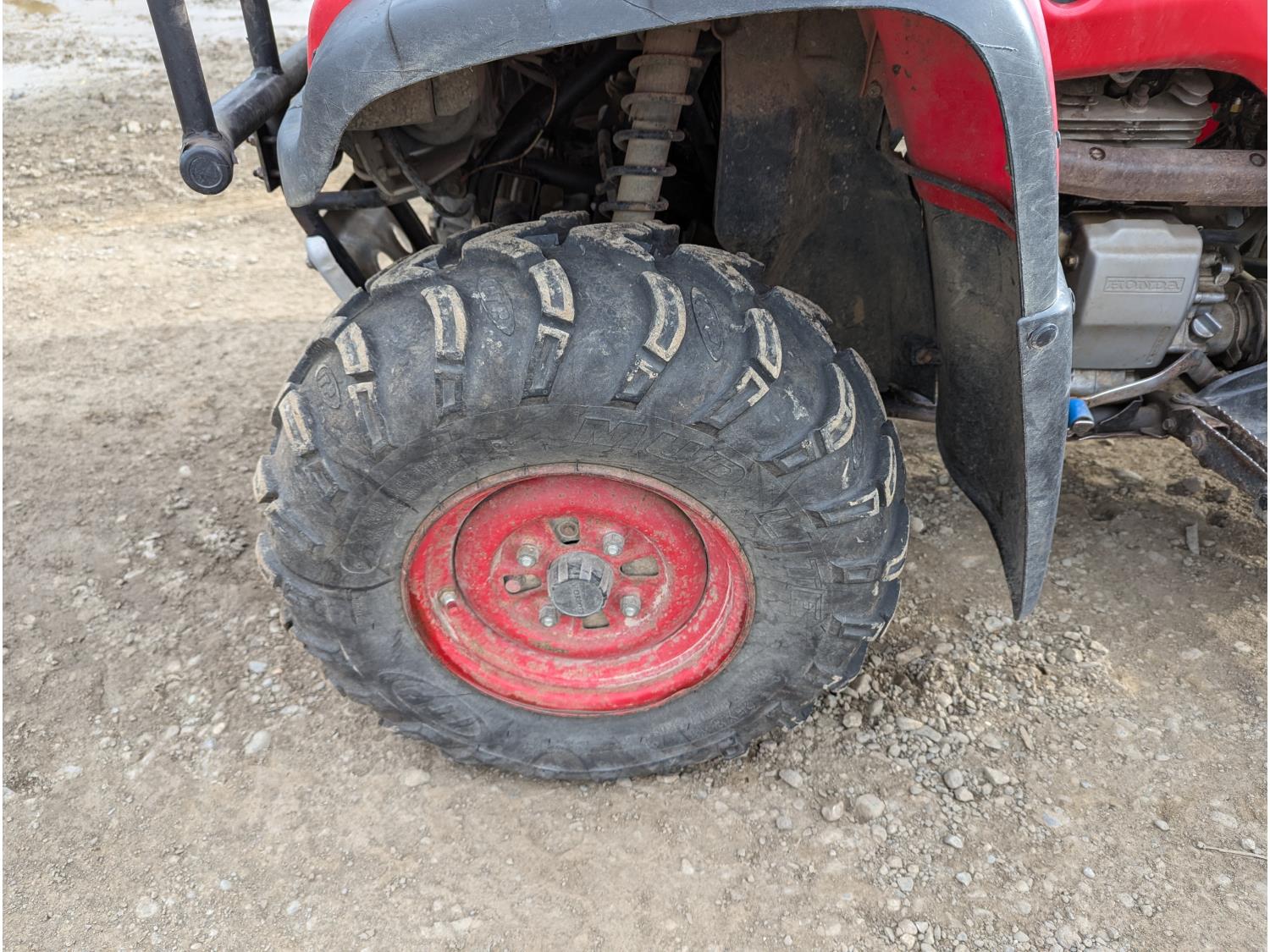 433 cc engine, manual transmission, reverse, receiver hitch, front and rear racks, independent suspension, 25X8-11 front tires, 25X12-11 rear tires