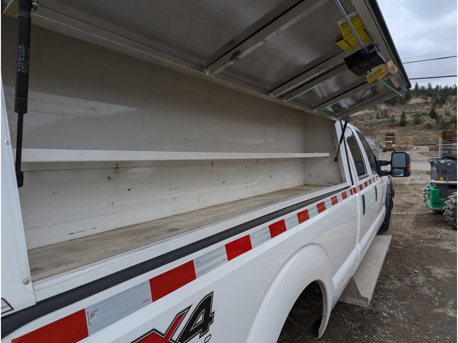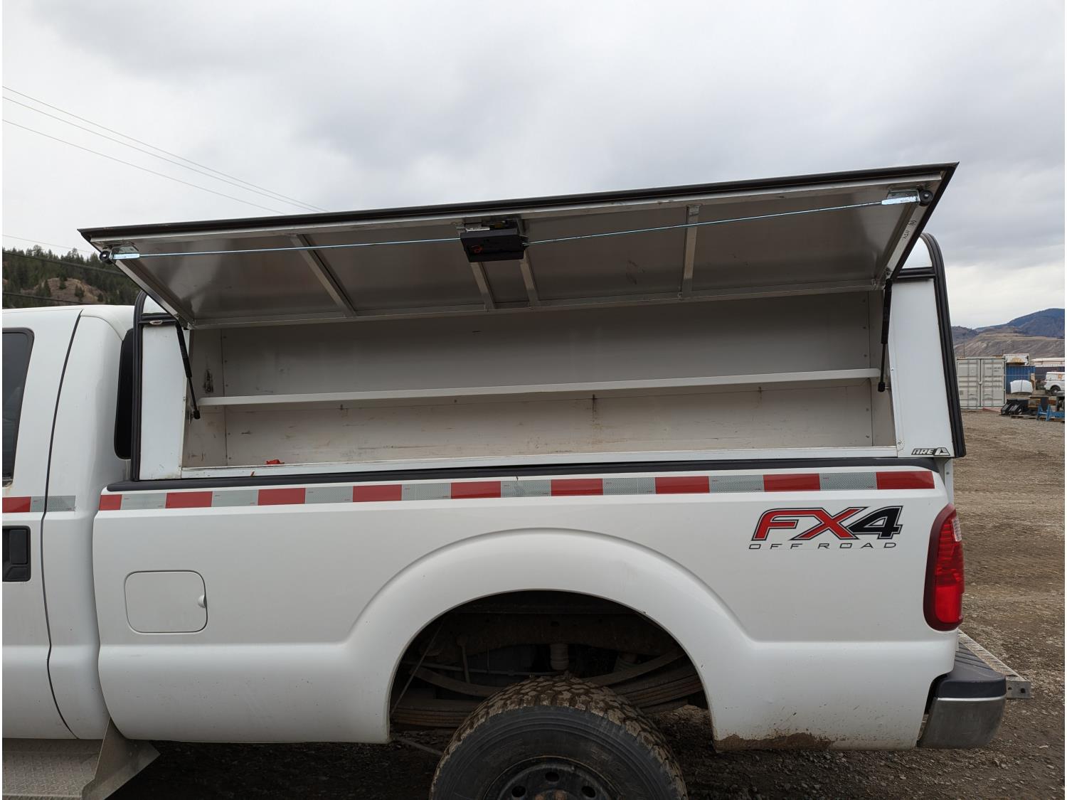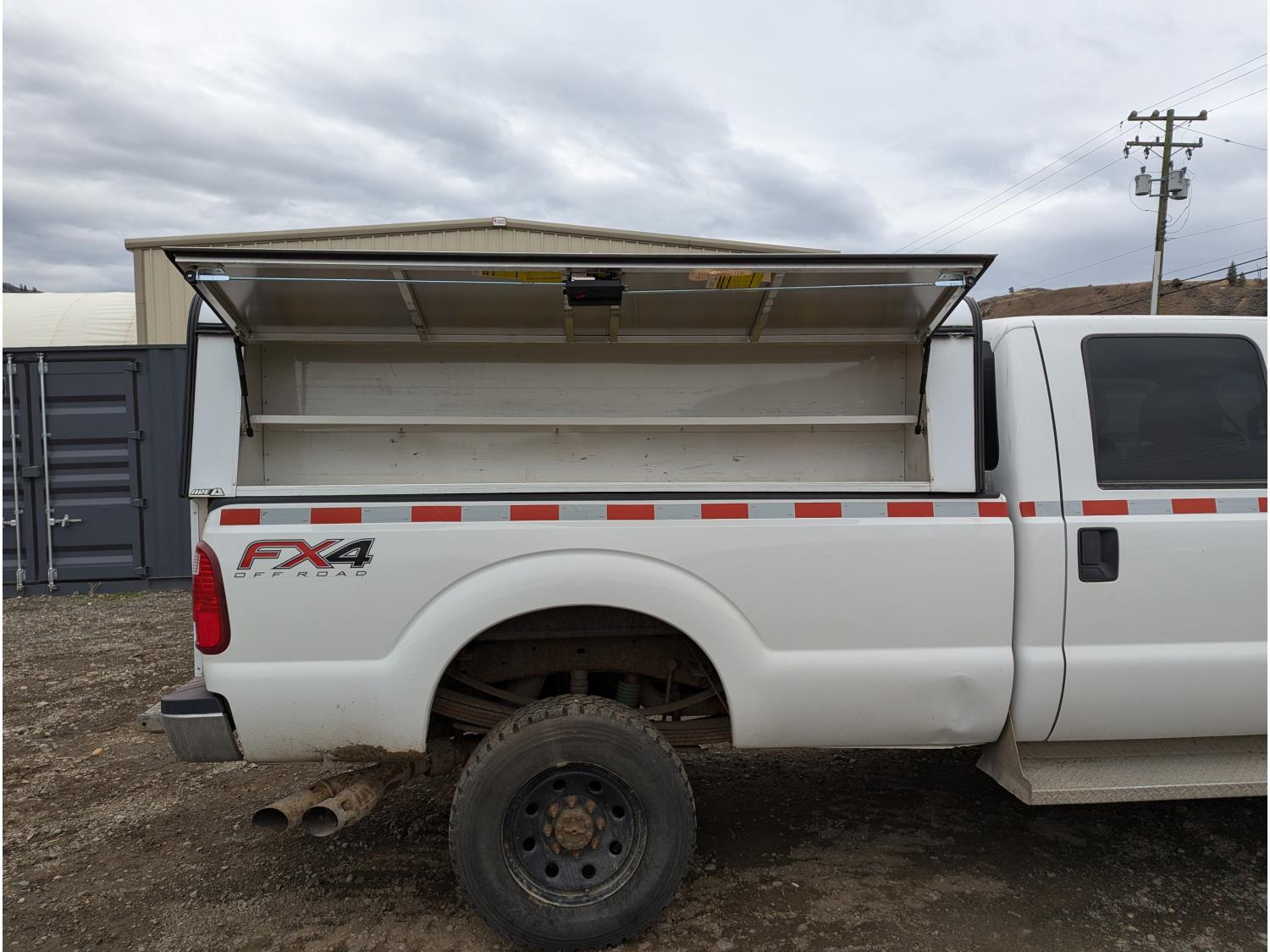 6.7 L, V8, Power stroke diesel, automatic transmission, P/W, P/L, A/C, heated mirrors, running boards, ARE bolt on aluminum service pod with lockable cabinets, heated seats, brake controller, HD front bumper/grill guard, 265/70/R17 tires
