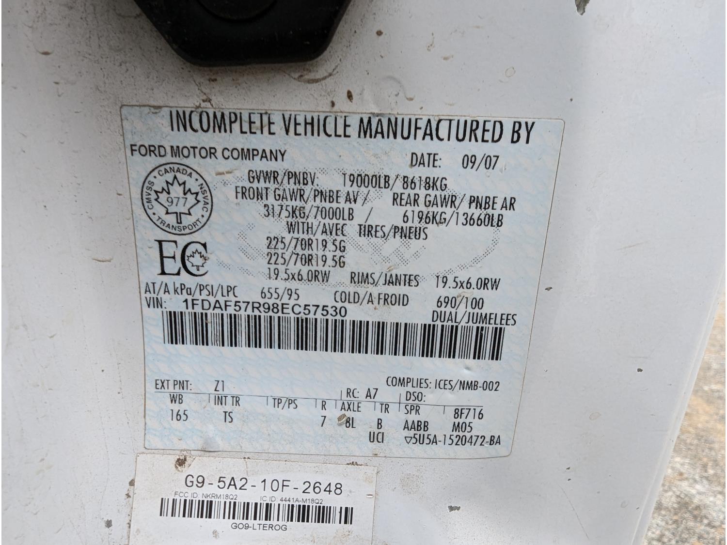 Ford POWER STROKE 6.4 L V8 diesel engine, electric engine block heater, automatic transmission, A/C, radio, stereo, 225/70/R19.5 tires