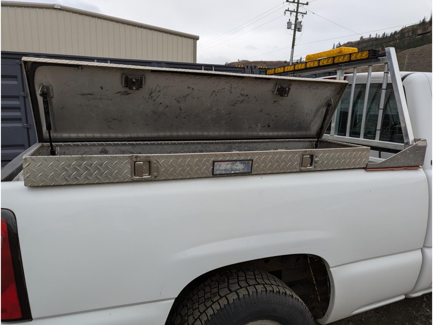4.8 L, V8, gas, automatic transmission, A/C, 8 ft box, aluminum headache rack, aluminum toolbox, Whelen warning light bars, 265/70/R17 tires