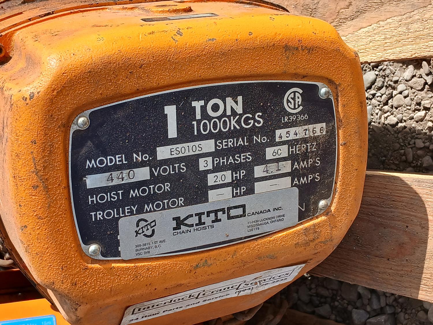 Kitco 1 Ton Chain Hoist 2HP 220V 3 Phase