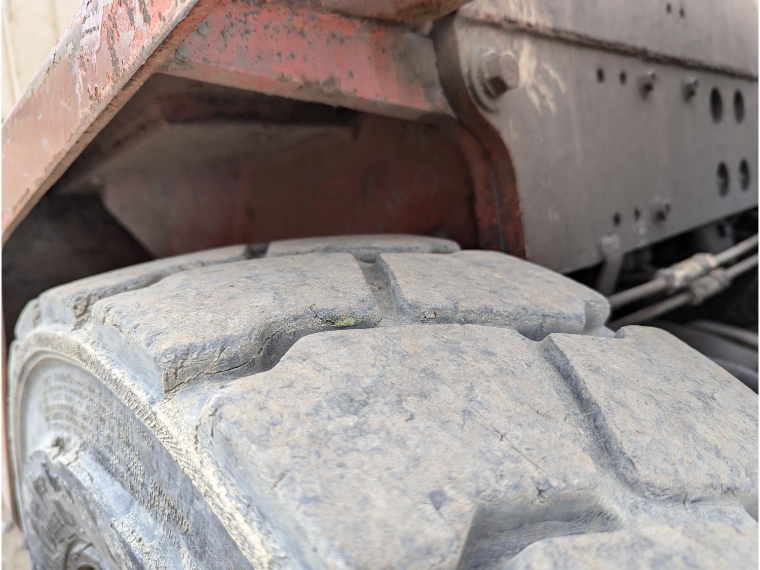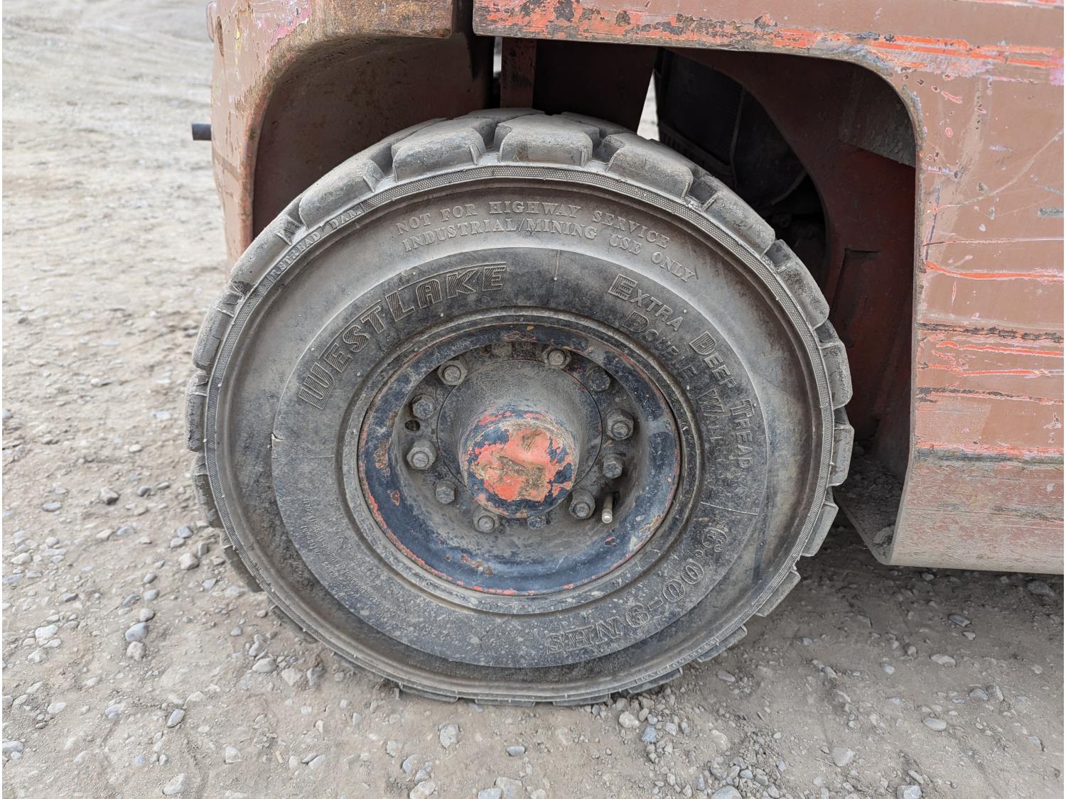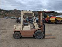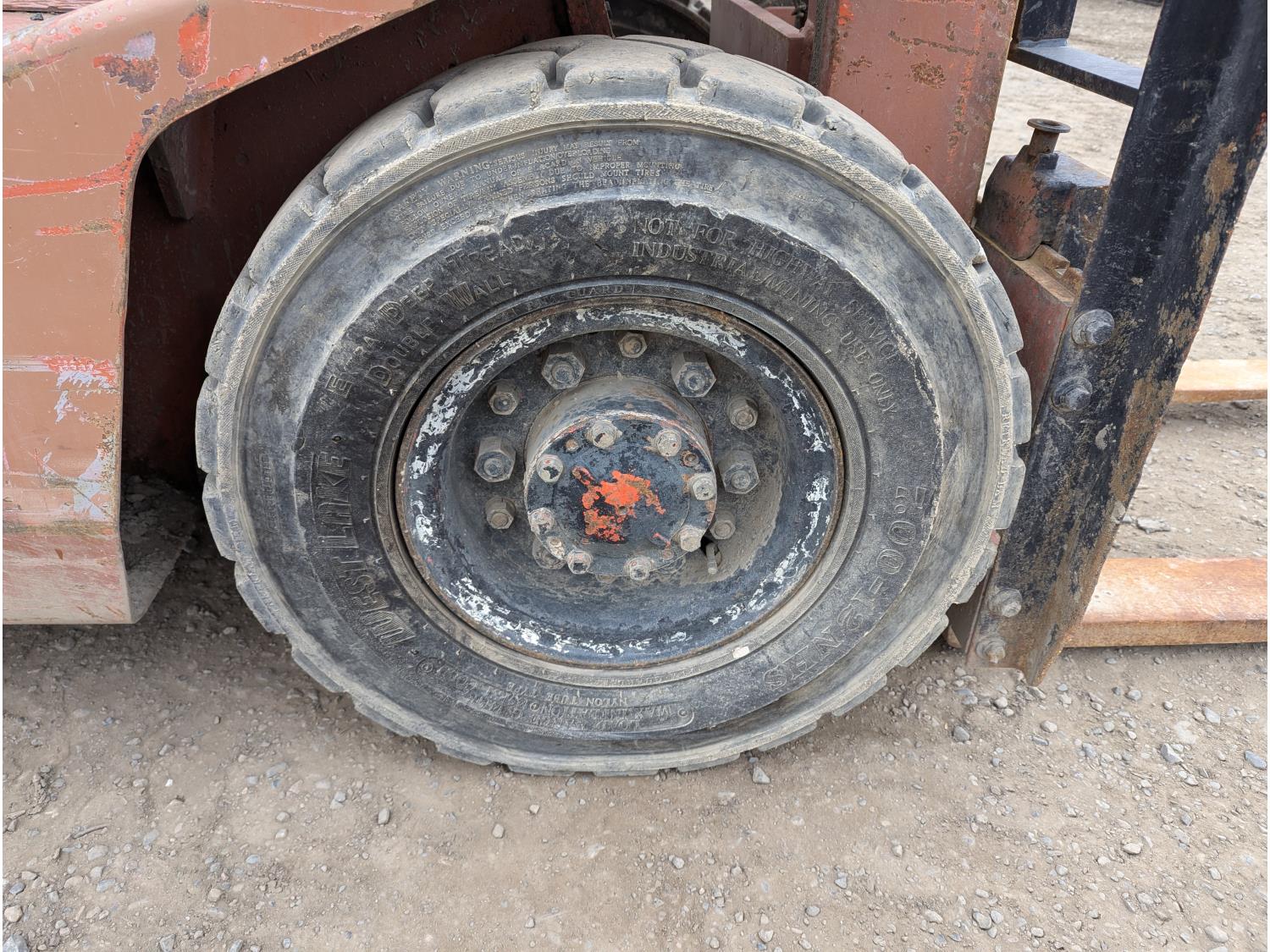 4 cylinder gas engine, single stage mast, 36 inch forks, Front tires: 7.00-12, Rear tires: 6.00-9, (Runs, needs clutch)