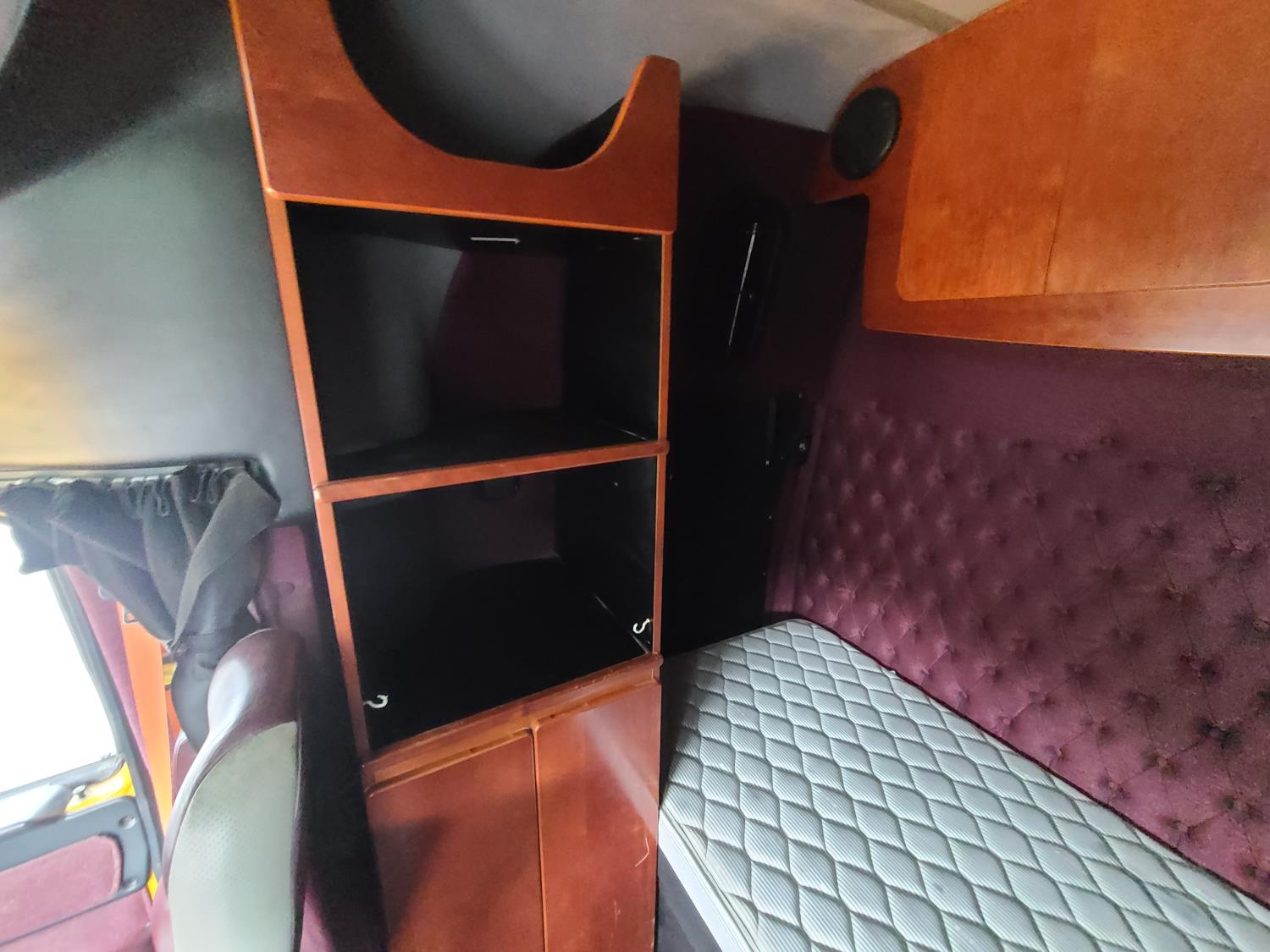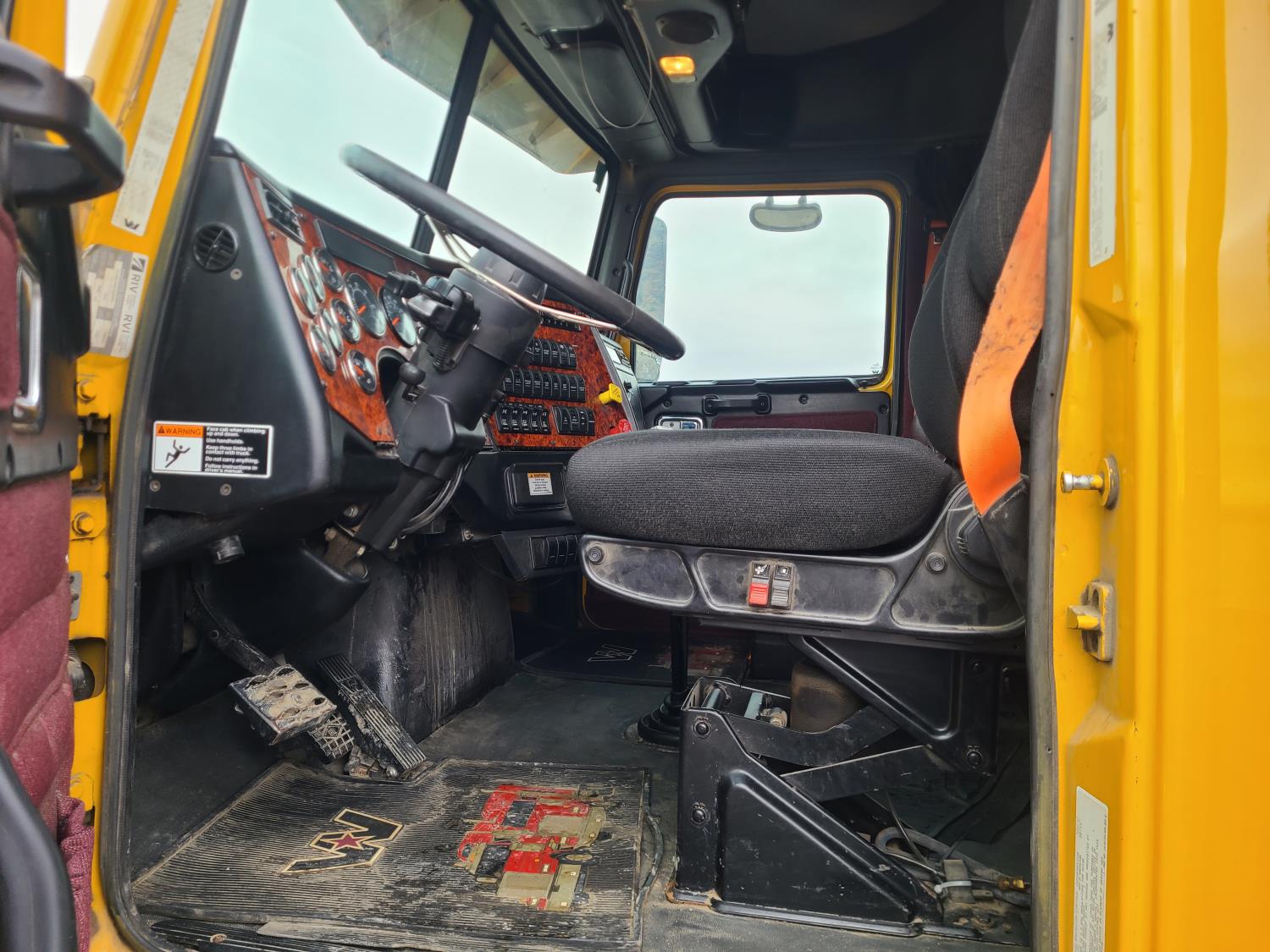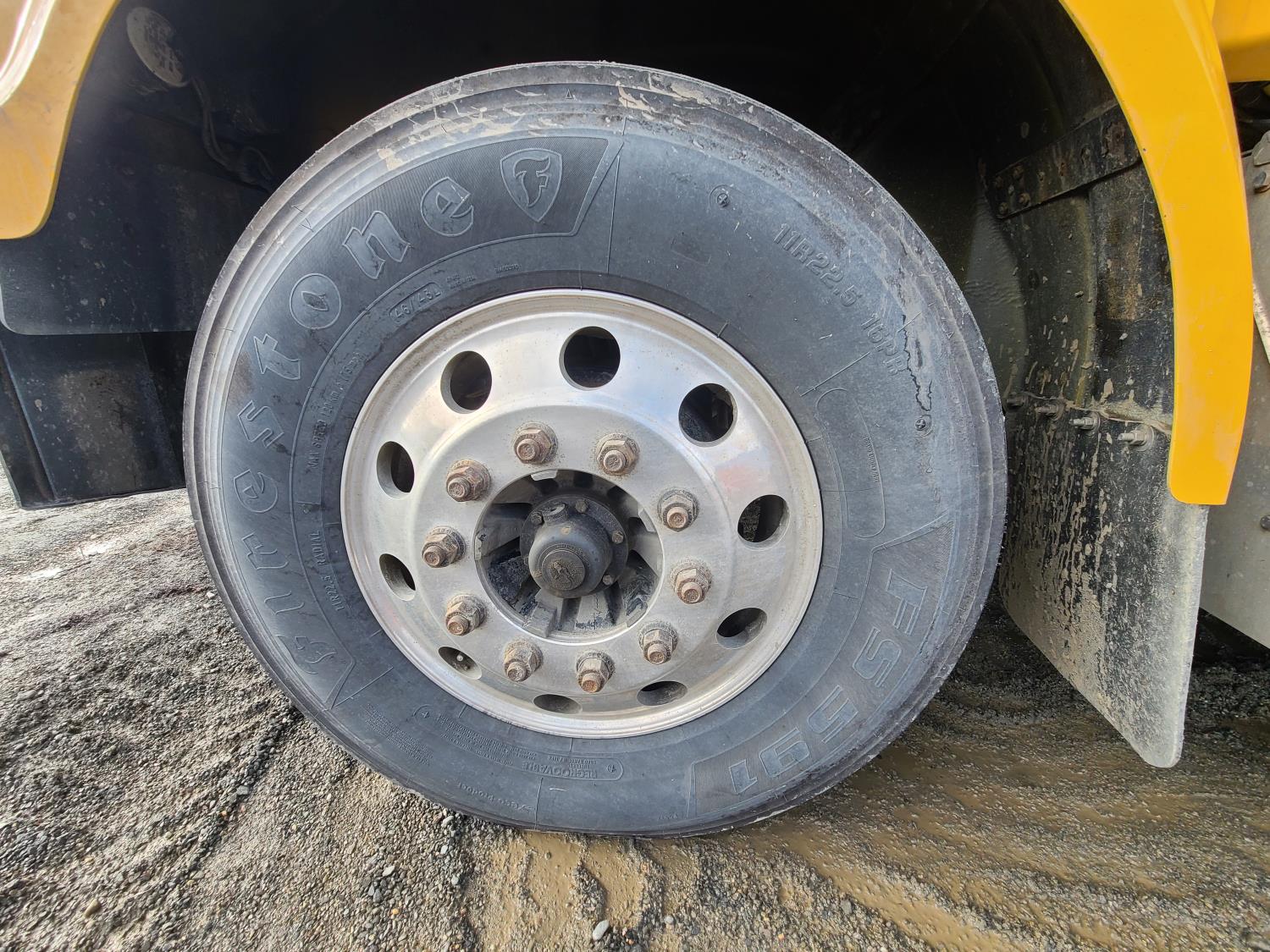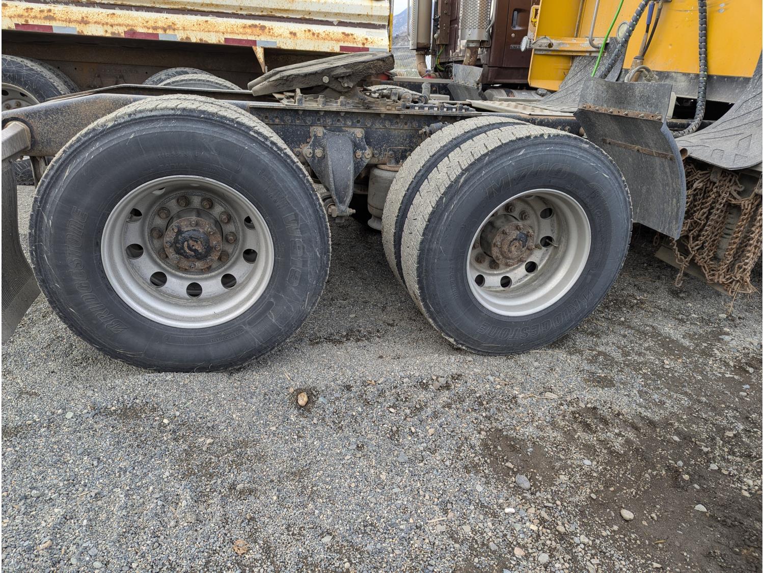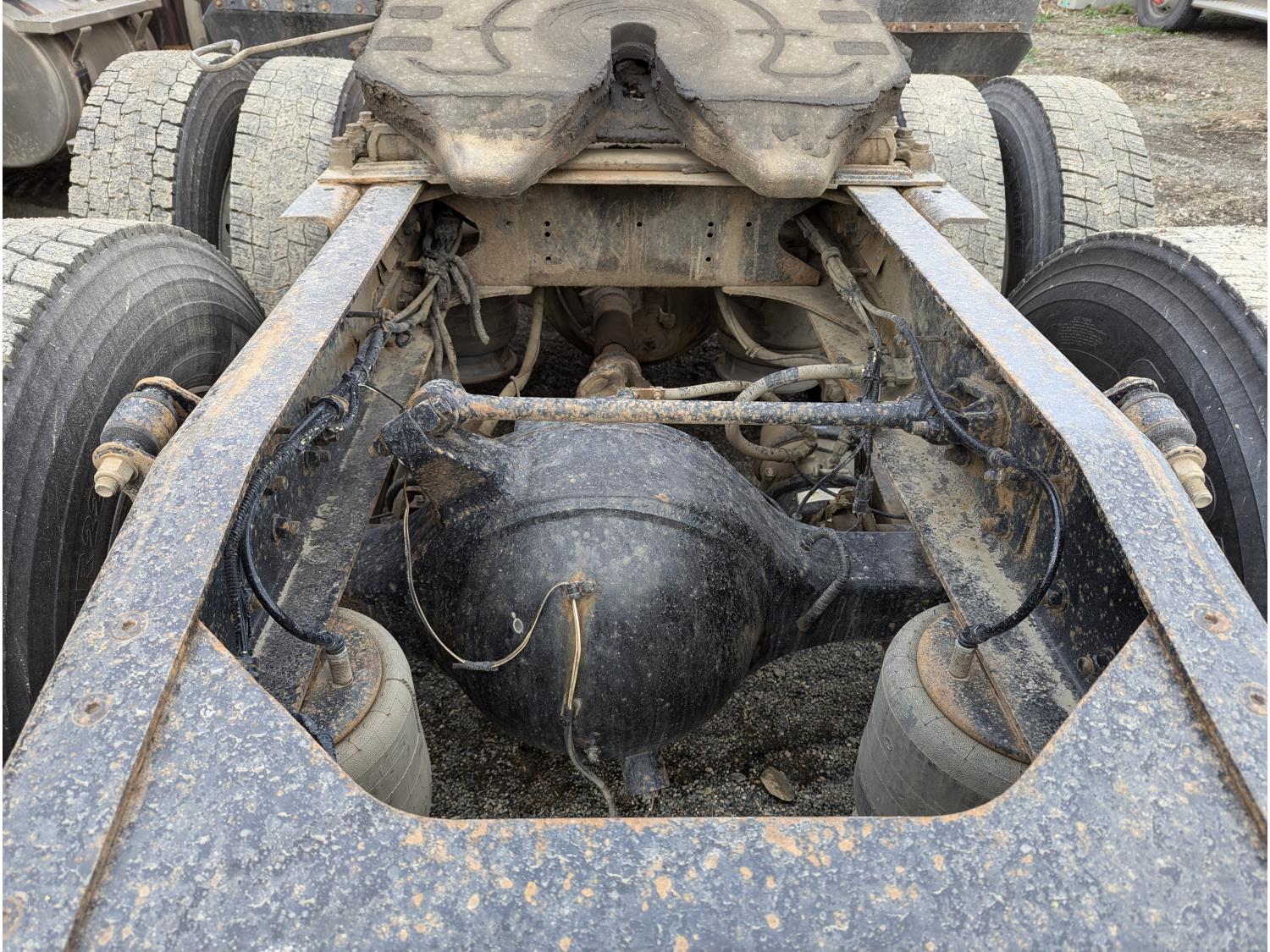 Detroit D472904 6 cylinder 530 HP diesel engine, DEF required, engine heater, engine brake, Eaton Fuller 18 speed manual transmission, cab heater, high rise sleeper, fridge, A/C, cruise control, air ride seats, radio, CB radio, stereo, air ride cab, saddle boxes, chain holders, front air assist suspension, FA240000 air ride suspension, 12,000 lb front axle, 46,000 lb rear axles, 3 way diff locks, 240 inch WB, all aluminum wheels, 11R/22.5 tires