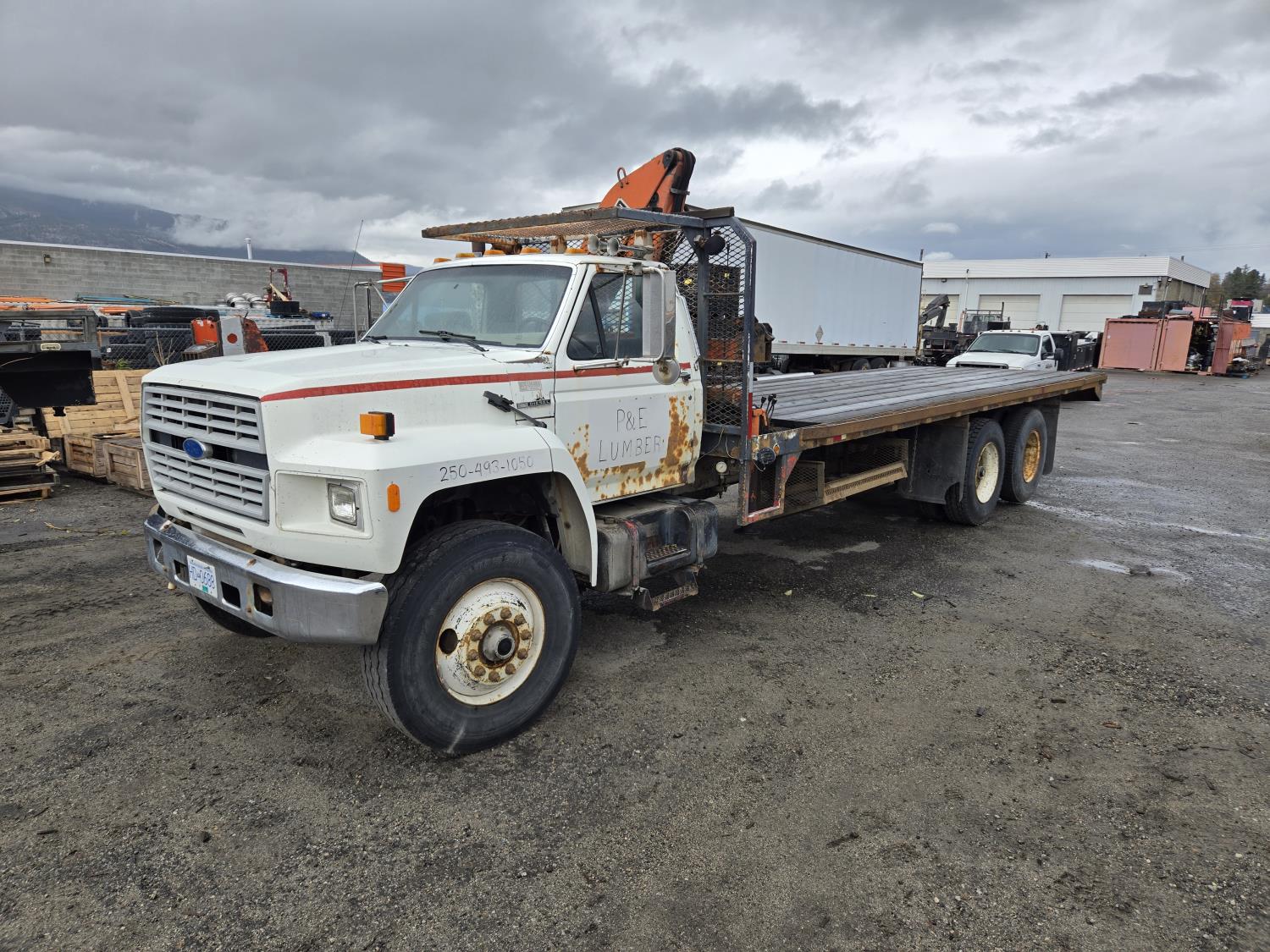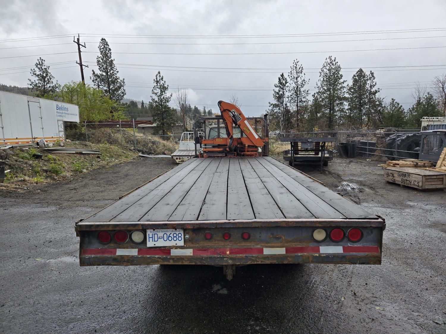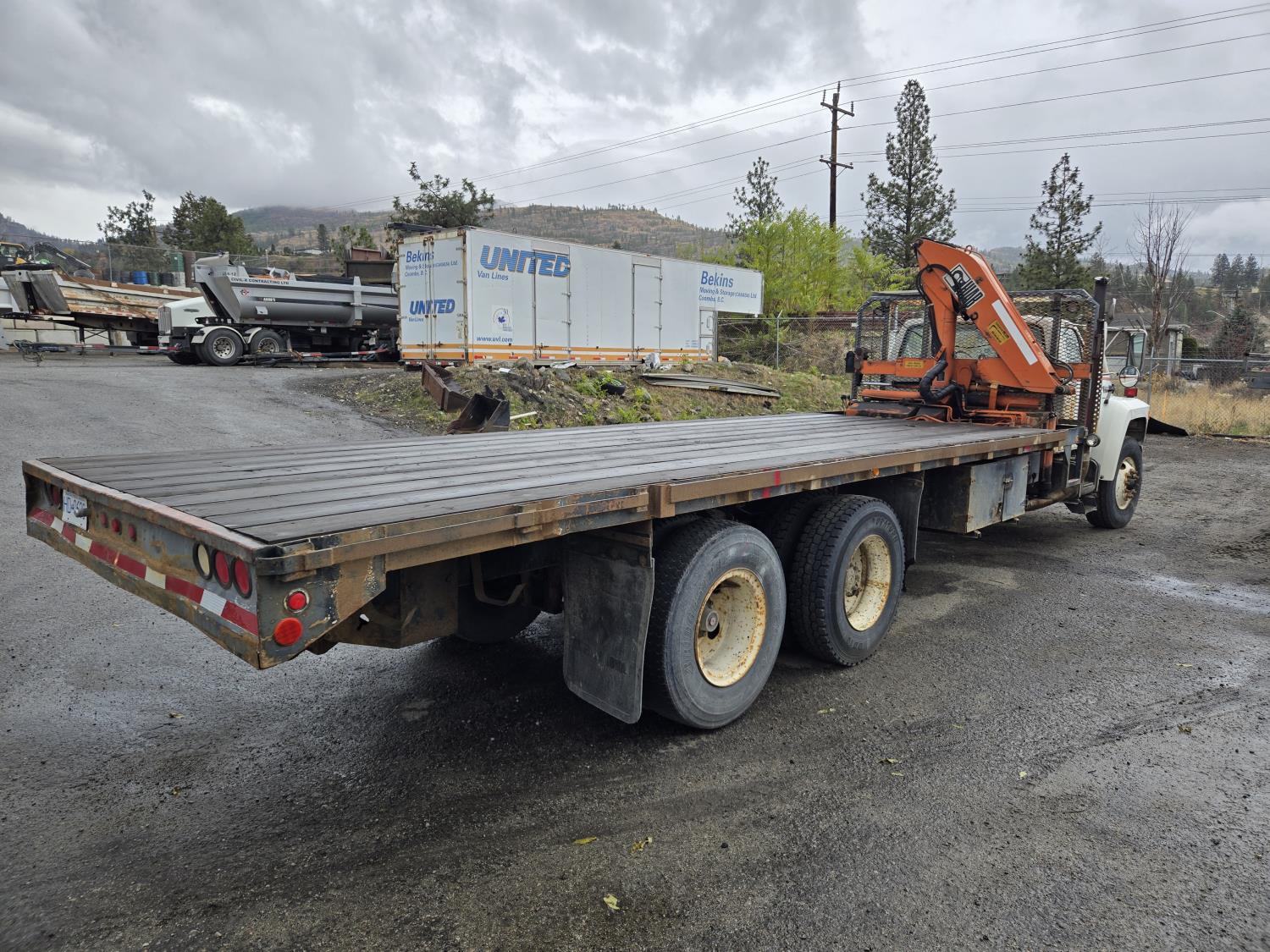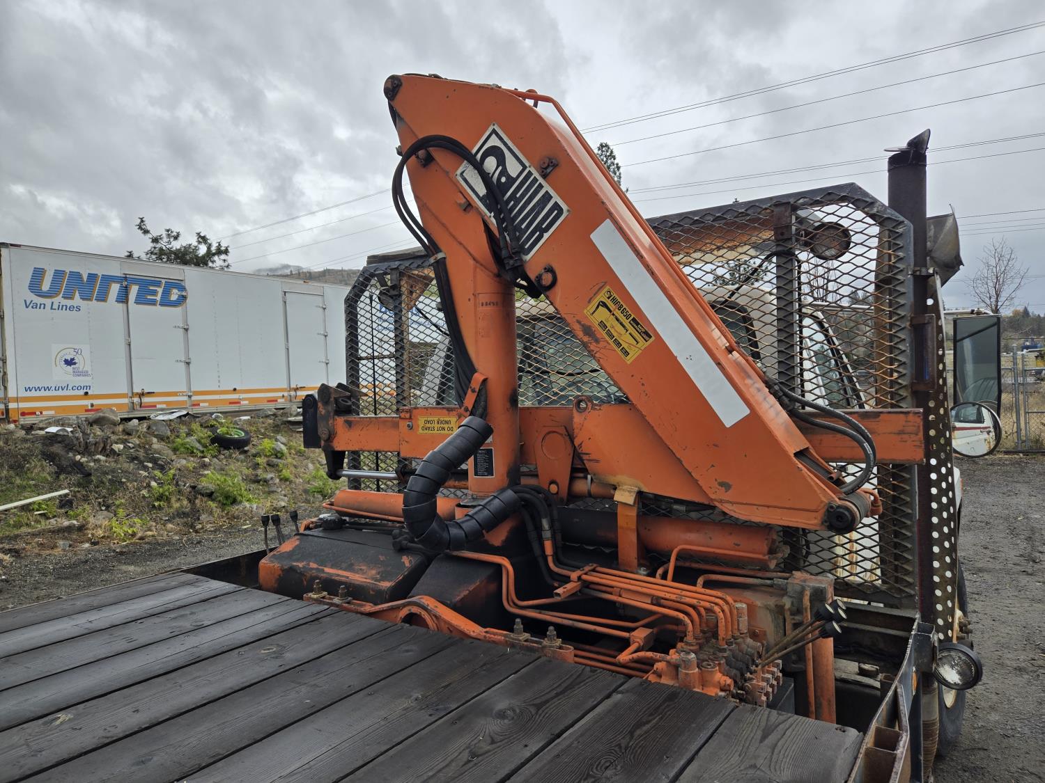Ford 7.8 L 6 cylinder diesel engine, 8 ft x 20 ft deck, HIAB knuckle front mount crane, outriggers