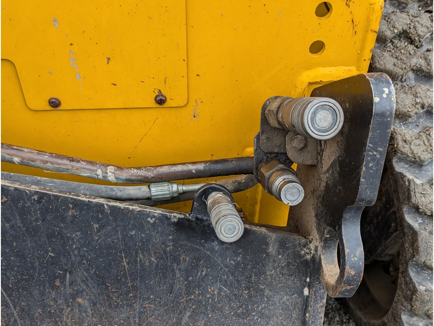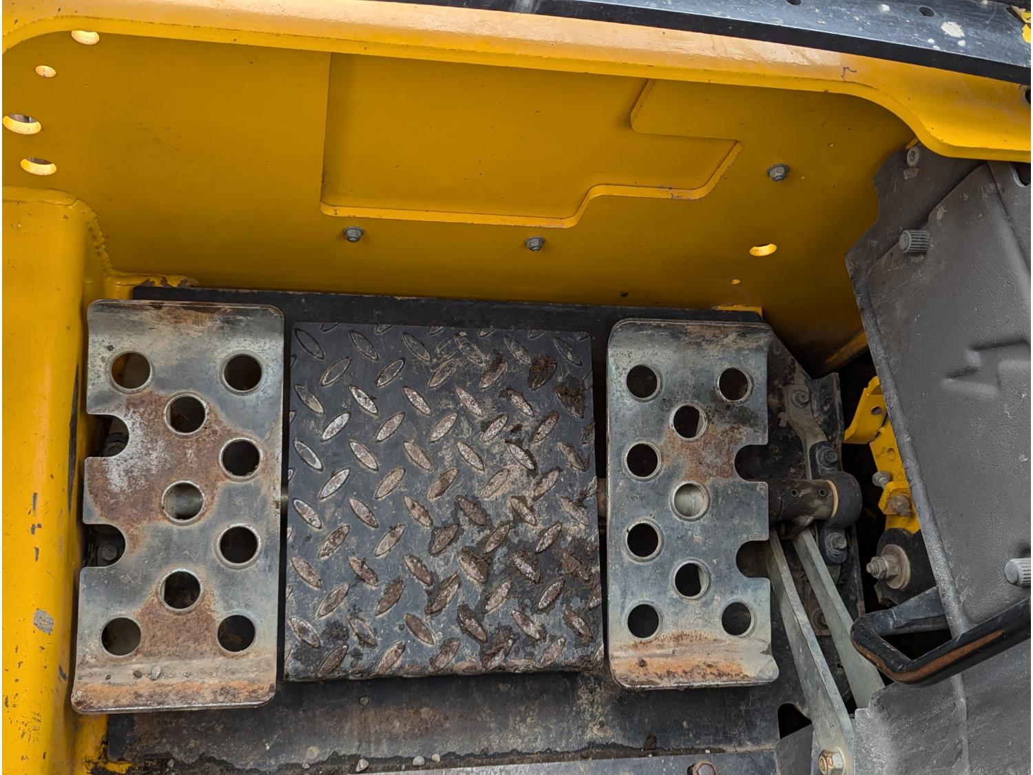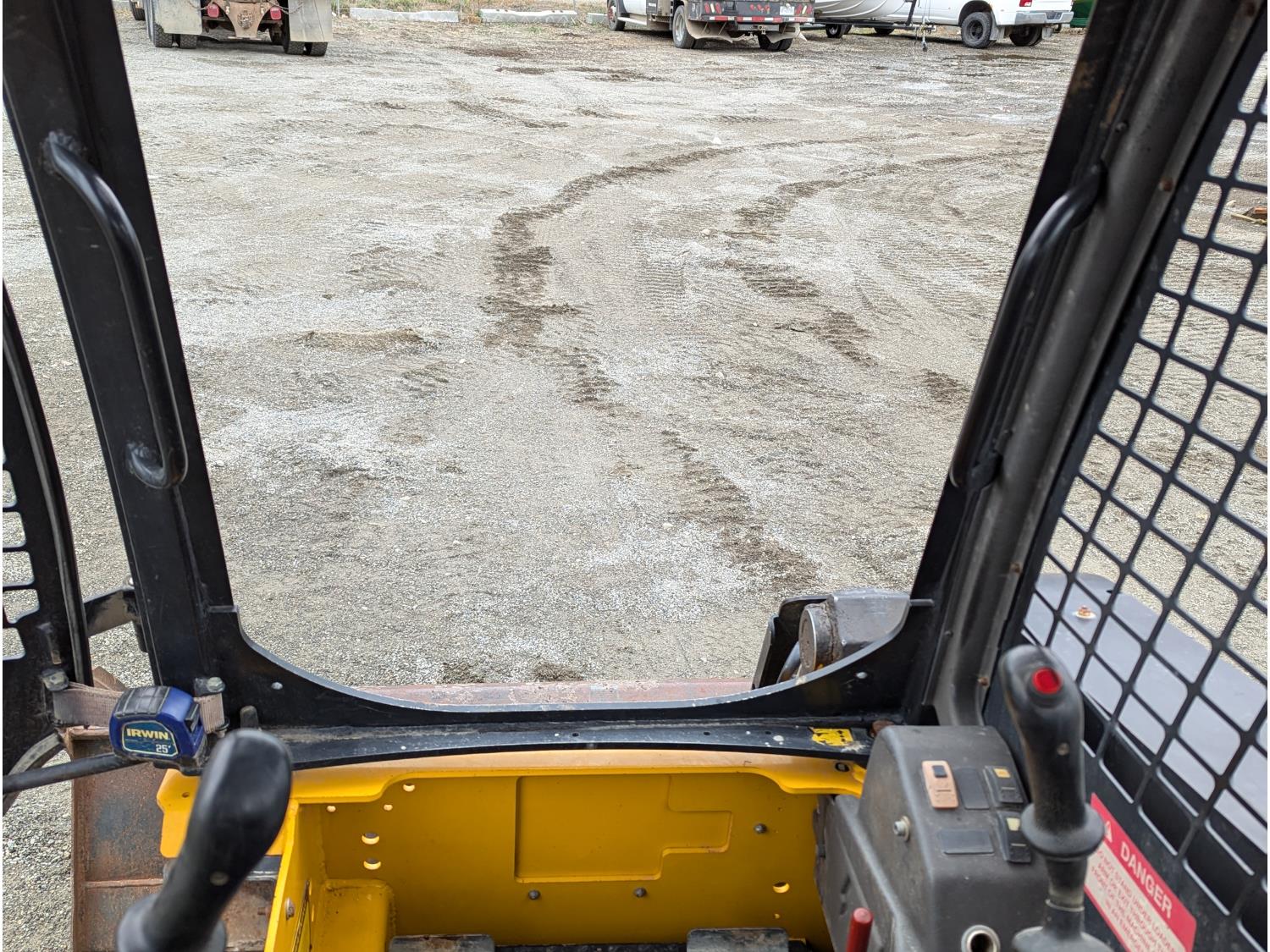 80hp Perkins diesel engine, foot & lever control, cab screens, 76 inch smooth bucket, manual coupler, 2 auxiliary hydraulics, high flow hydraulics, 13 inch rubber tracks