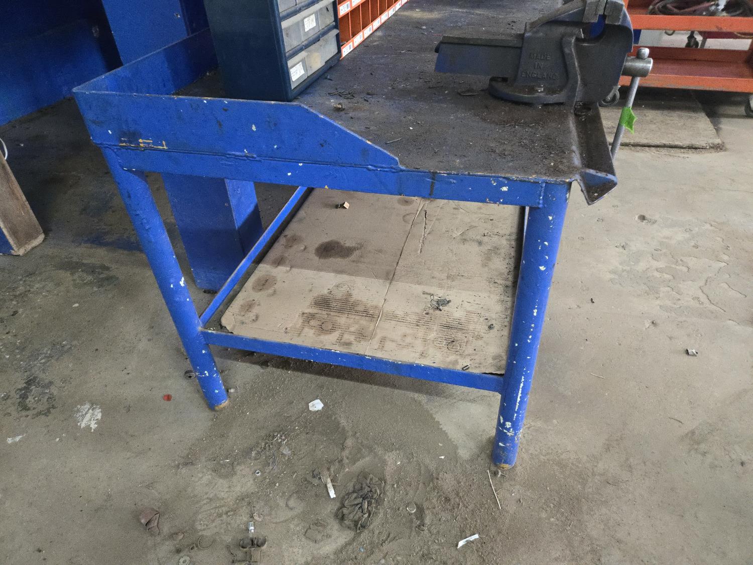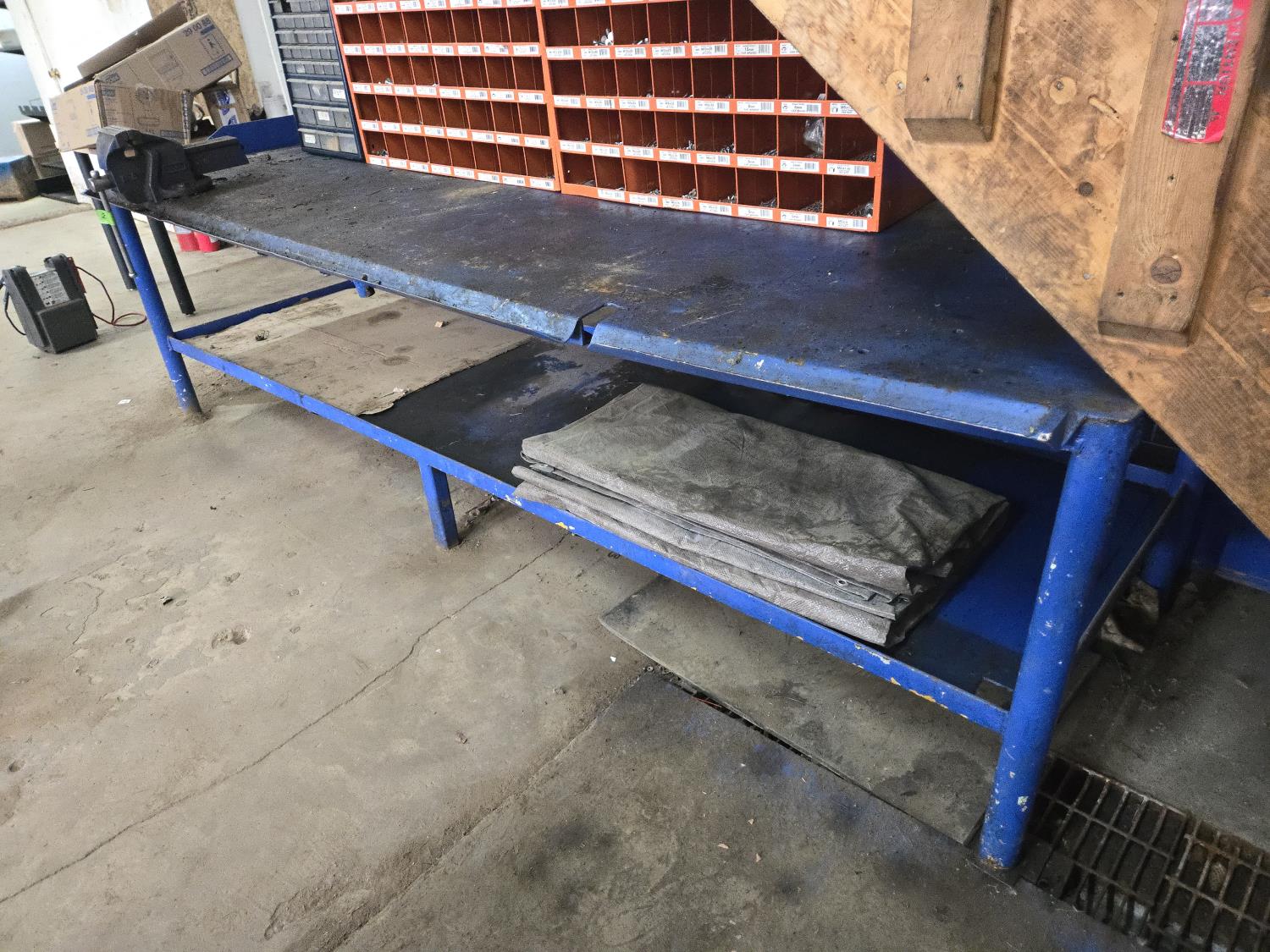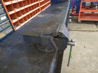 875 10 Ft Metal Teardown Work Bench with 5 Inch Vise, Poly Tarp & Fender Cover