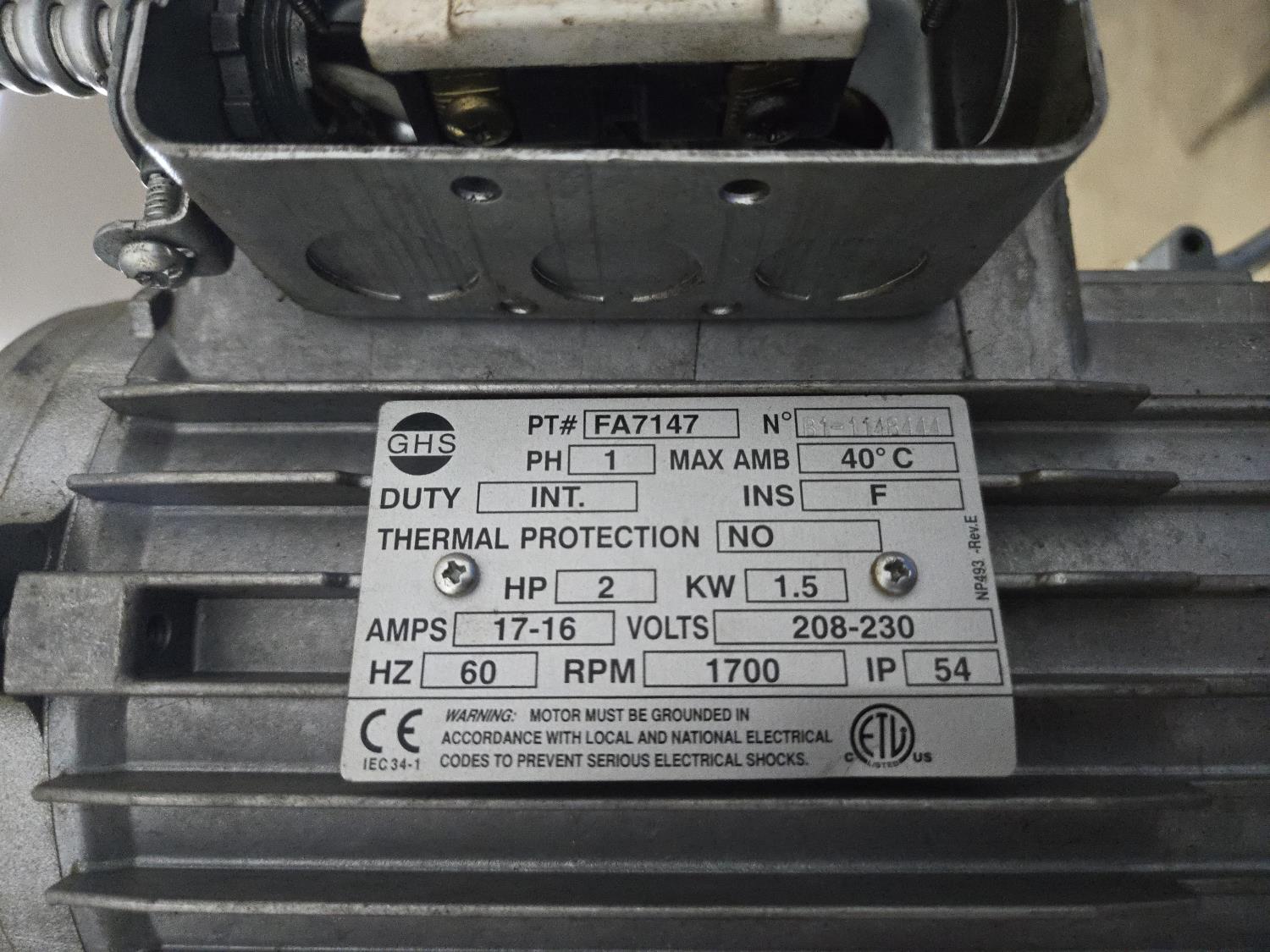 2 HP motor, 230 volt, single phase