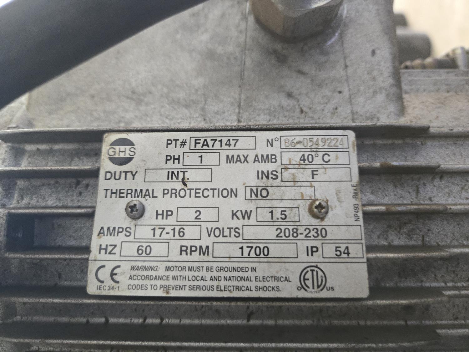 2 HP Motor, 230 volt, single phase