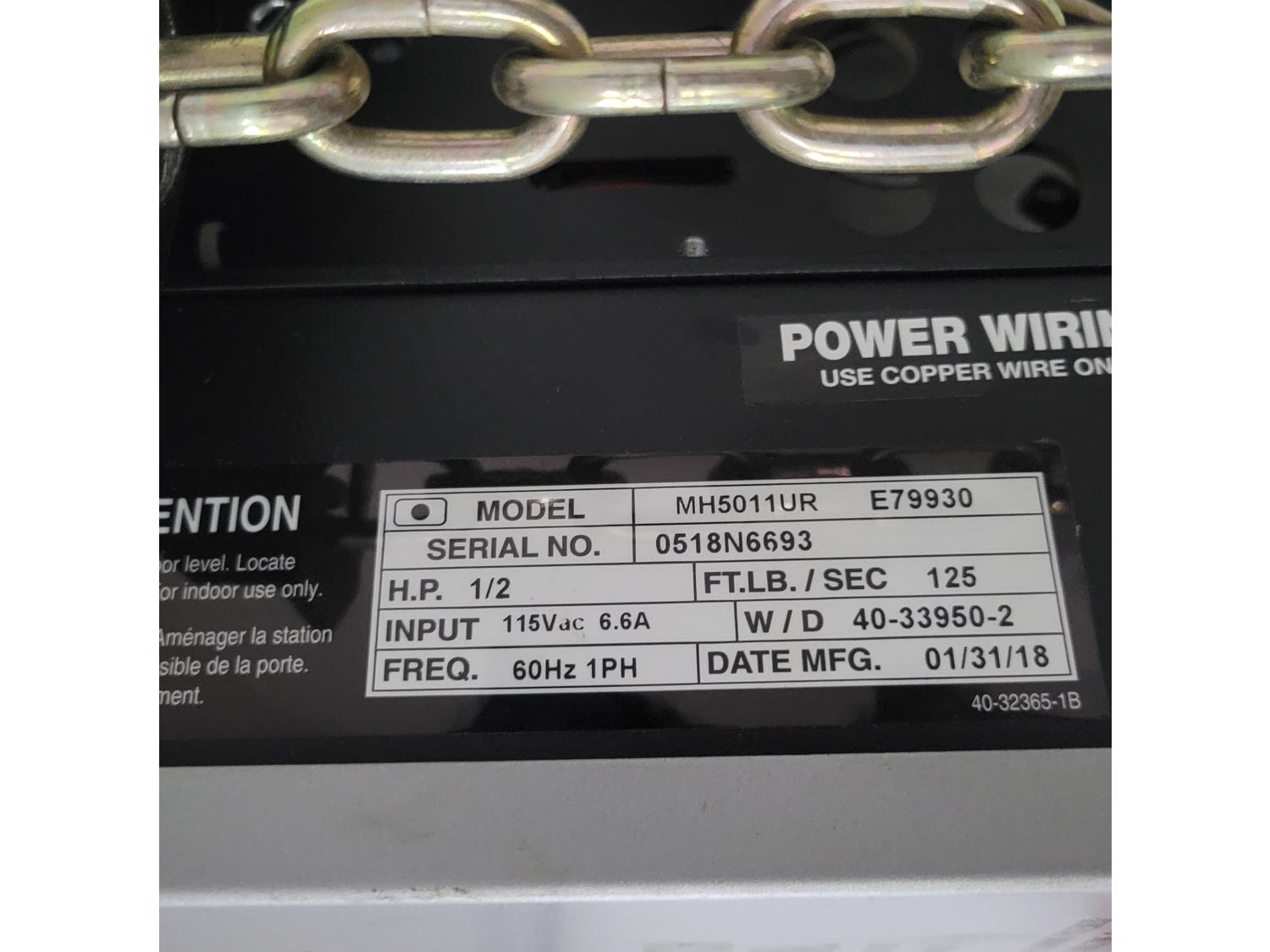 890 2018 Liftmaster MH5011UR Wall Mounted Electric Garage Door Opener