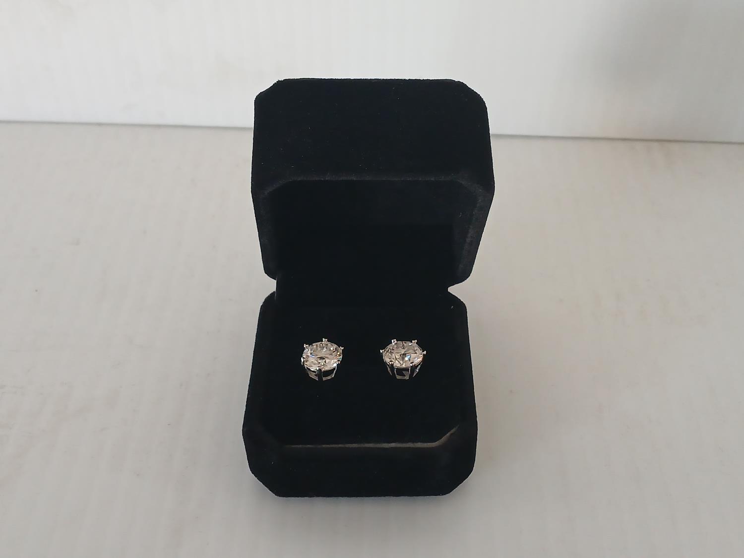 3.0ct Moissanite Diamond stud earrings, mounted in 925 Sterling Silver with White Gold overlay, D VVs1 (Tests positive with a Diamond tester)